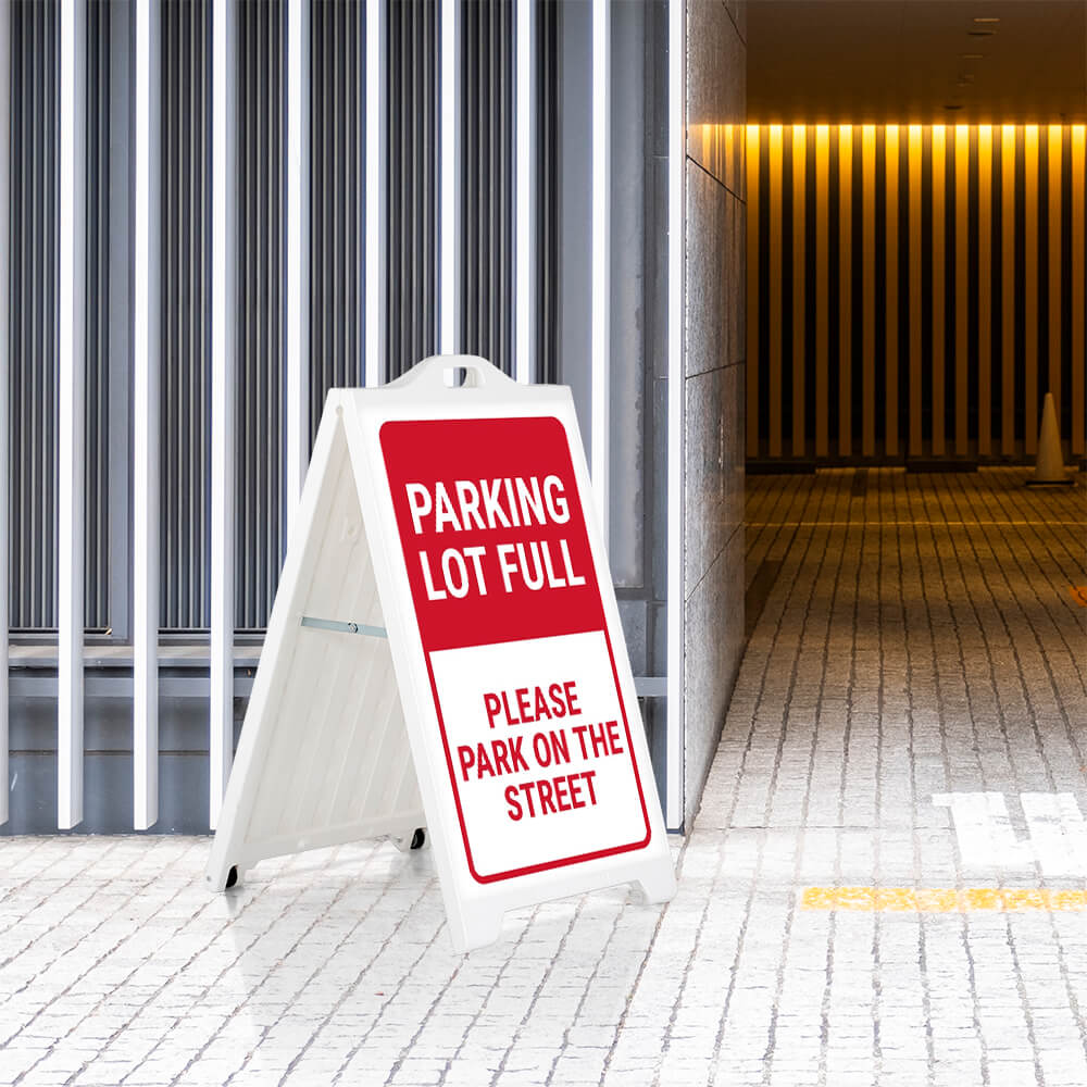Double-Sided 24×36 White SignPro Sidewalk A-Board for Posters – Parking Lot Full Display