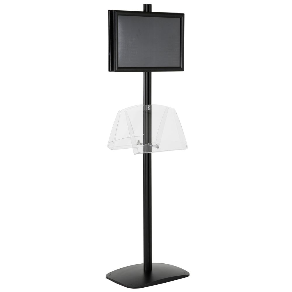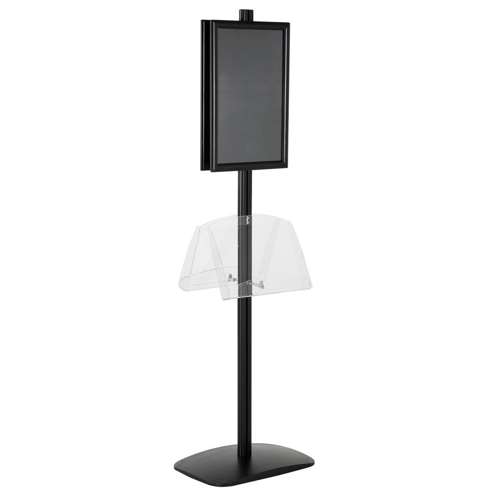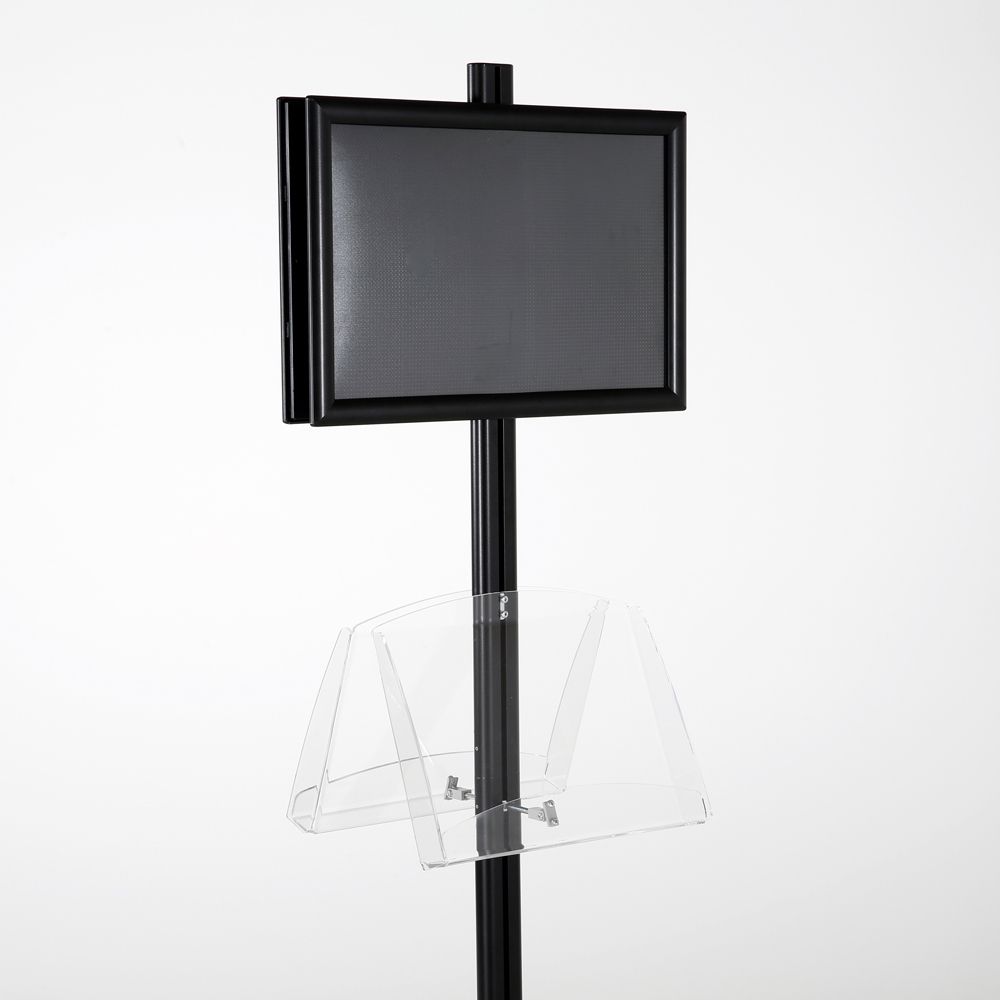 Double-Sided Black Floor Display Stand with Two 11×17 Frames and Two 5.5×8.5 Clear Literature Pockets