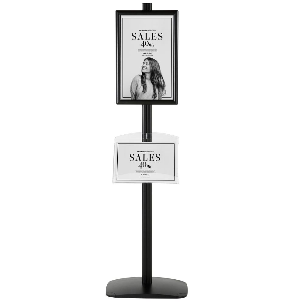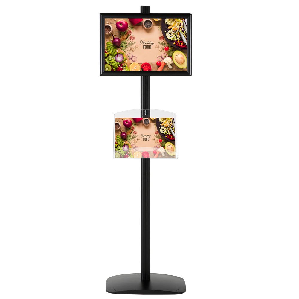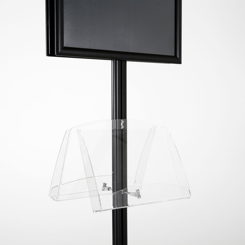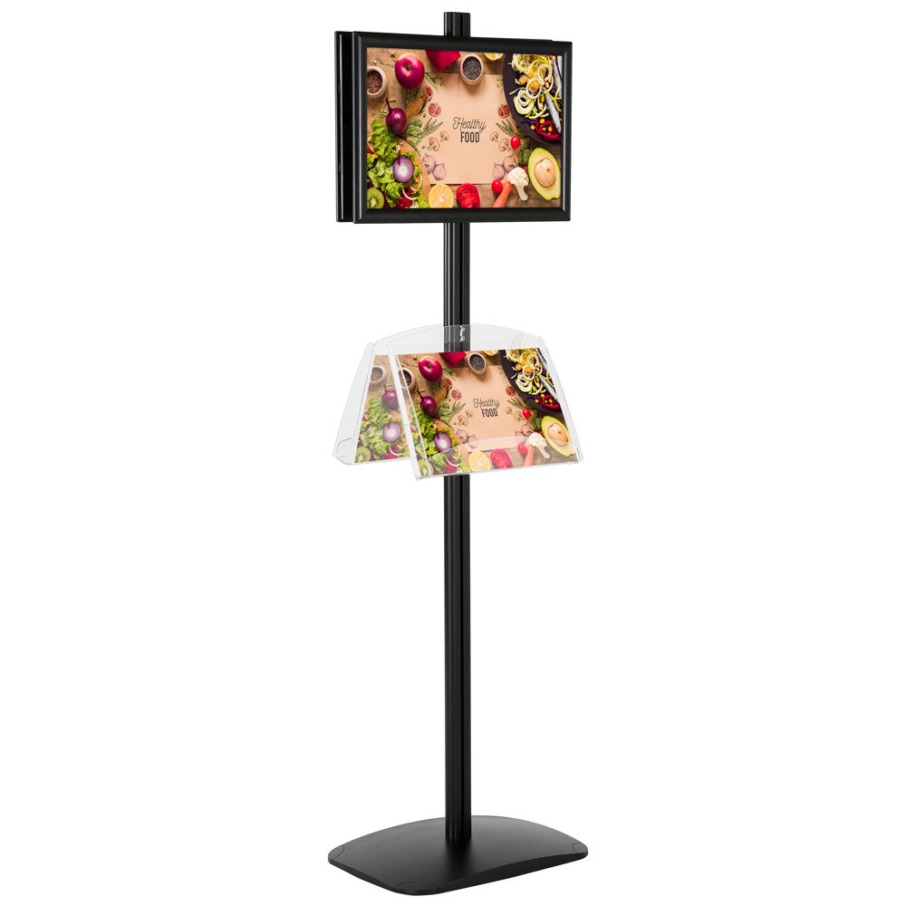 Double-Sided Black Floor Display Stand with Two 11×17 Frames and Two 5.5×8.5 Clear Literature Pockets