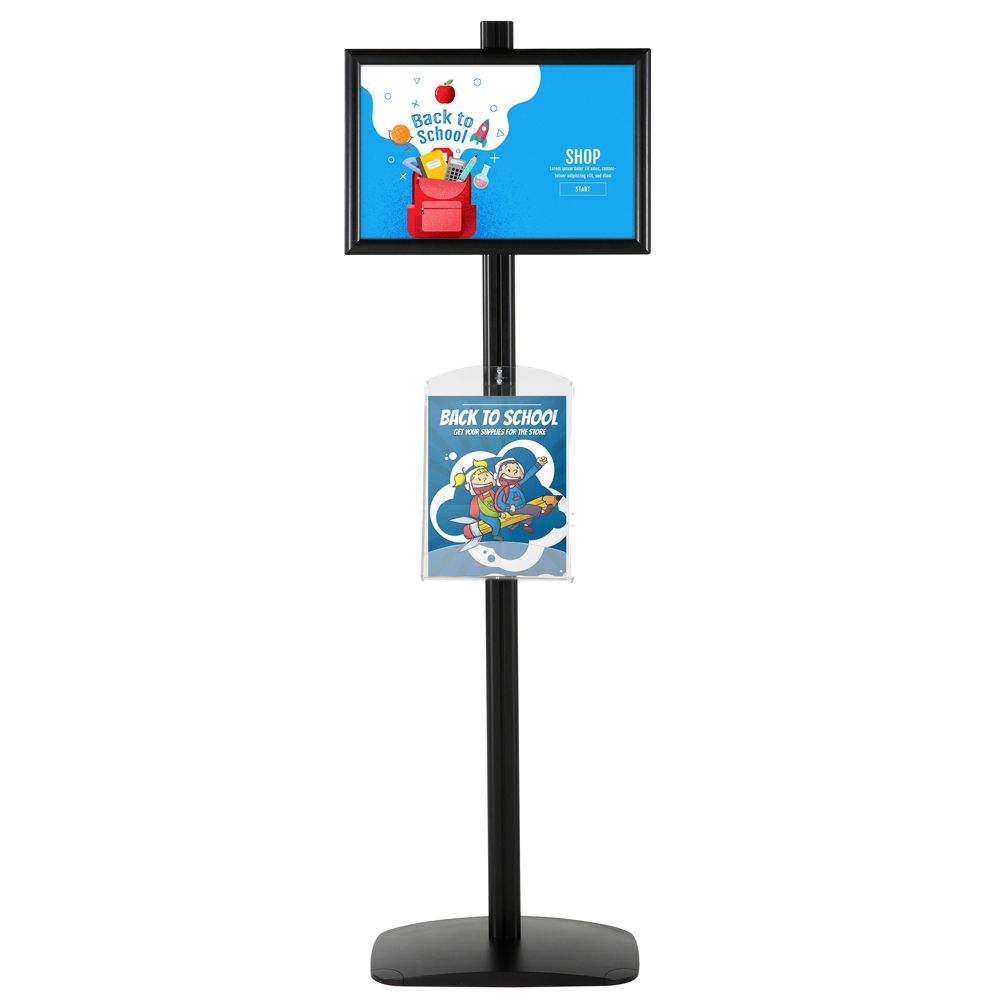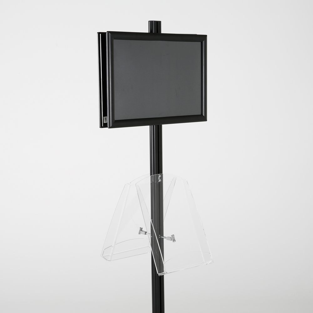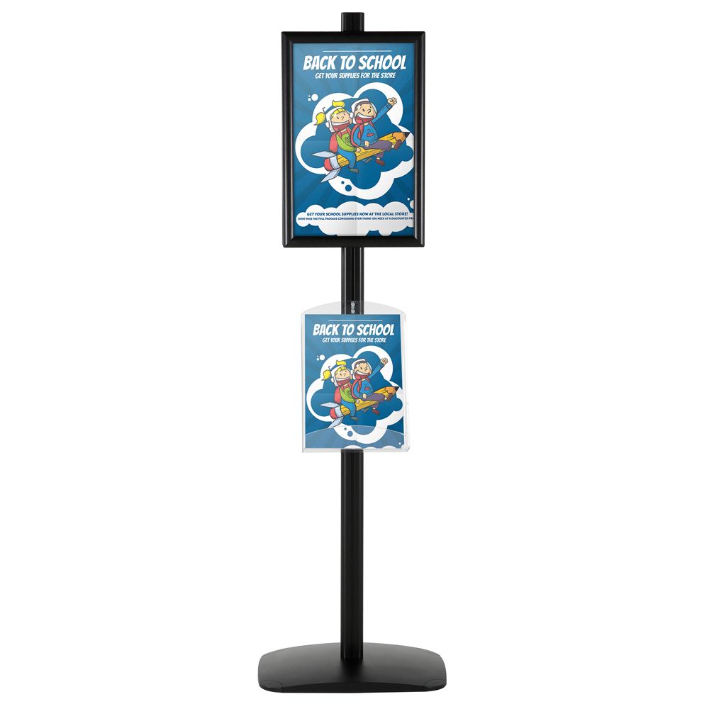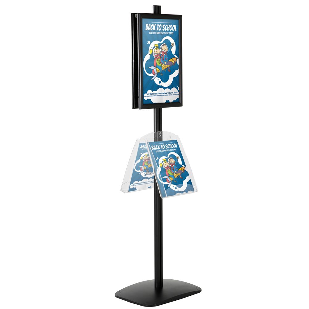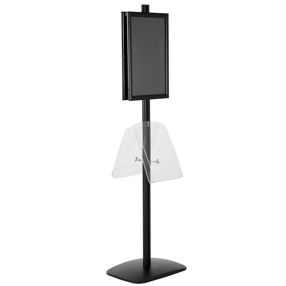 Double-Sided Black Floor Poster Stand with 2x(11×17) Display and 2x(8.5×11) Clear Literature Pockets