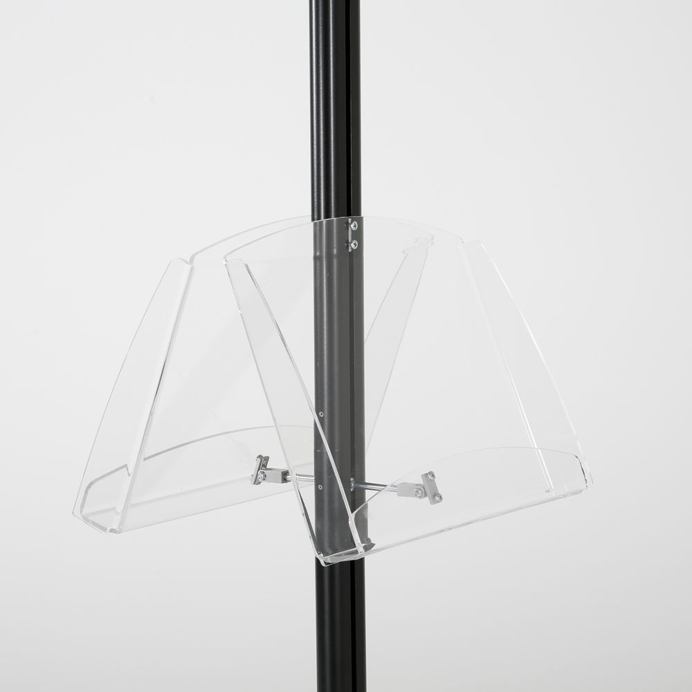 Introducing the perfect brochure stand for versatile indoor use, designed to accommodate various models. This stand features adjustable frames and shelves that can be securely attached to the central pole, either individually or collectively, offering flexibility and convenience. With a height of 57.5 inches, this brochure stand is ideal for showcasing promotional materials in offices, trade shows, and retail environments. Its sleek and sturdy design ensures stability and durability, making it an essential addition to your marketing toolkit. Enhance your display setup with this user-friendly and efficient brochure stand.