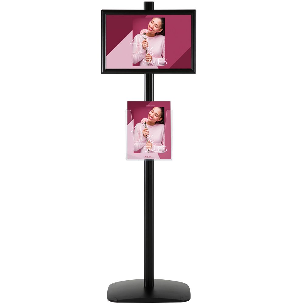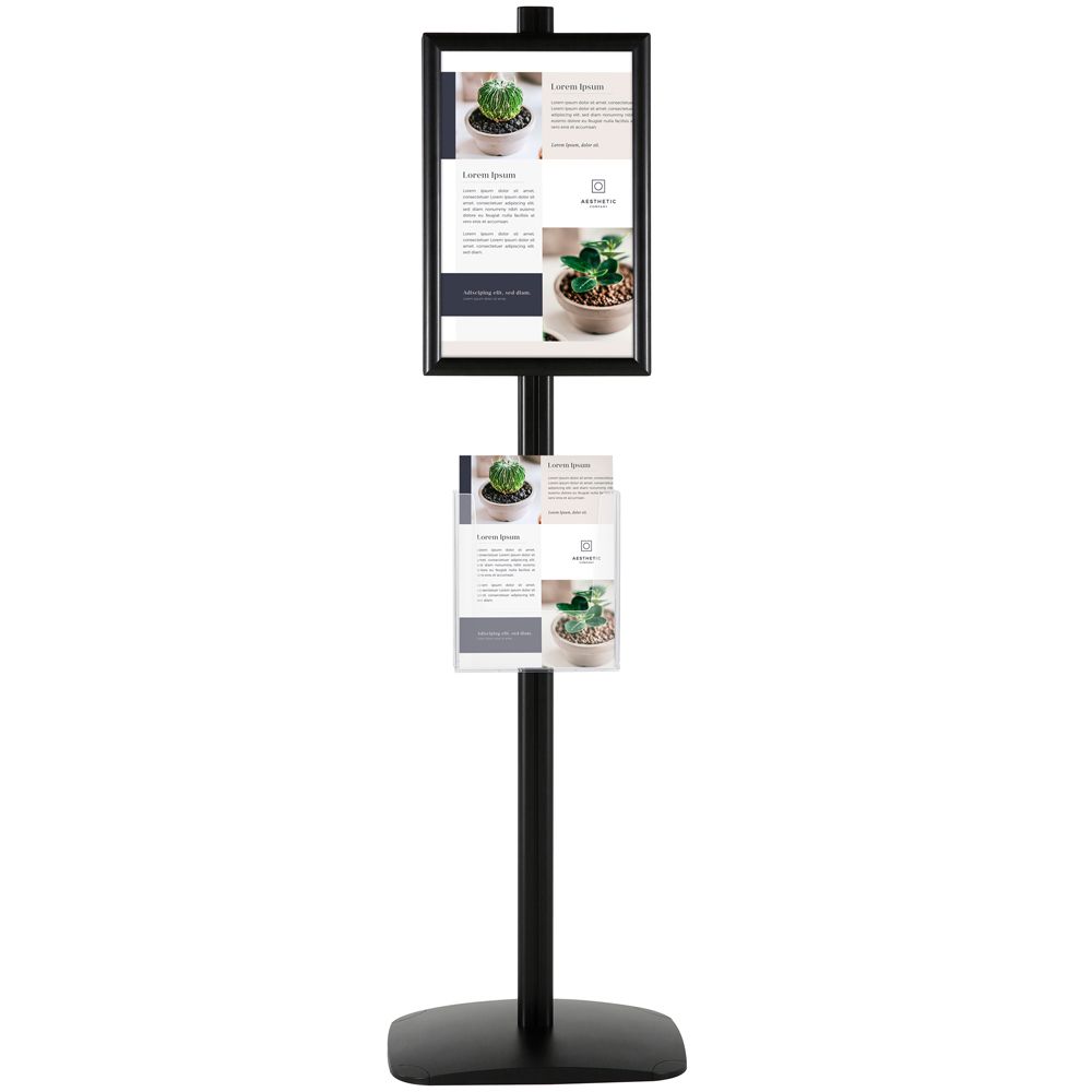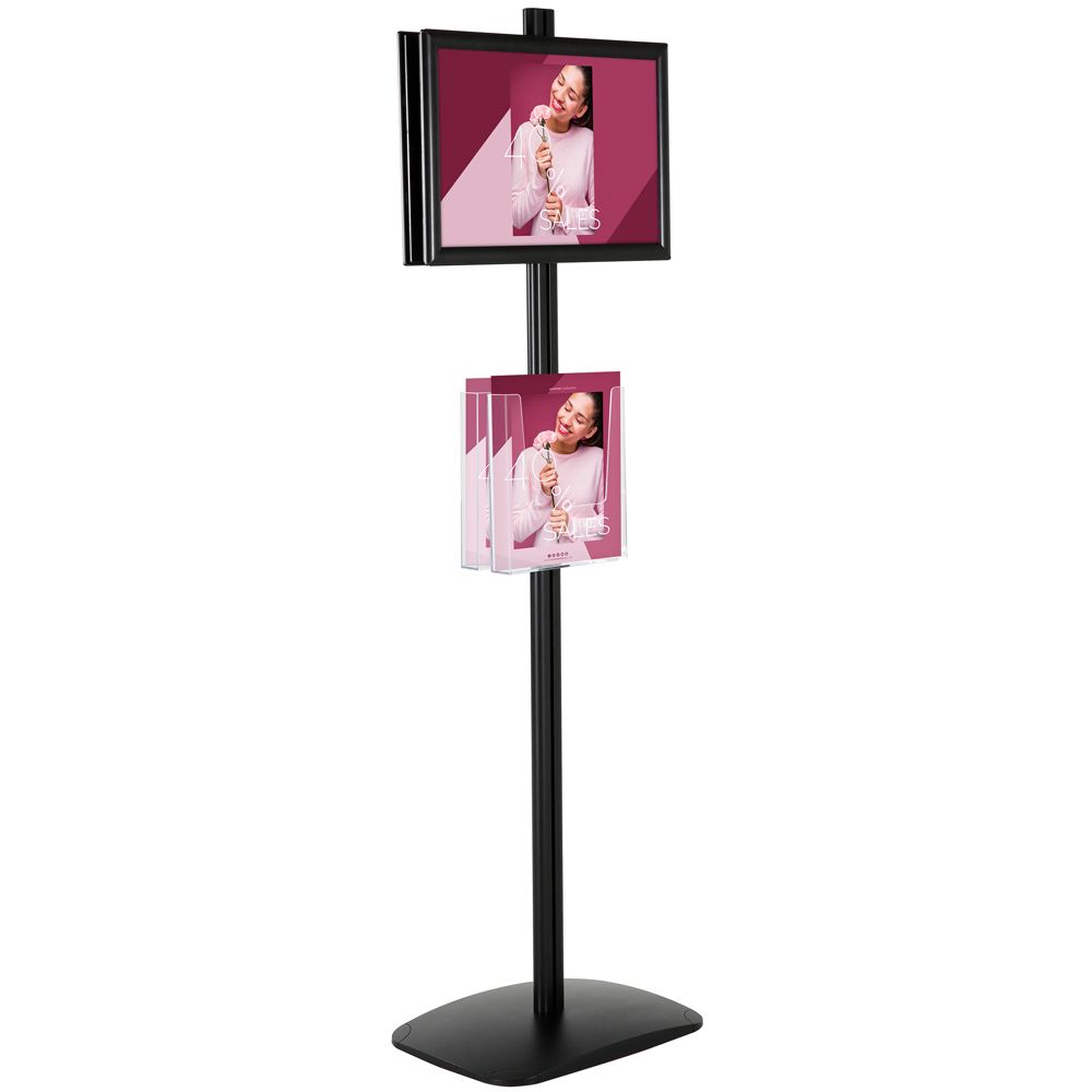 Double-Sided Black Free-Standing Display with Literature Pocket – 2x (11×17) Panels & 2x (8.5×11) Clear Pockets
