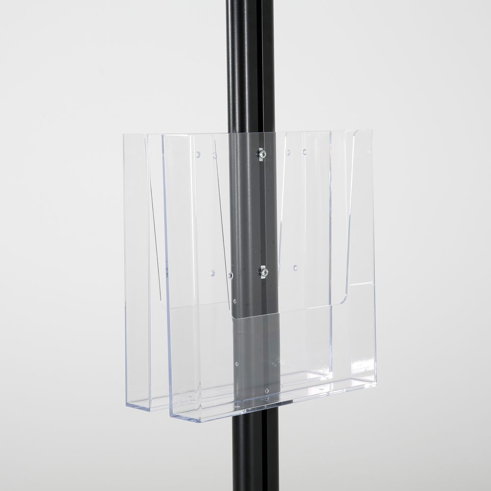Introducing the perfect brochure stand for versatile indoor use, designed to accommodate various models. This stand features adjustable frames and shelves that can be securely attached to the central pole, either individually or collectively, offering flexibility and convenience. With a height of 57.5 inches, this brochure stand is ideal for showcasing promotional materials in offices, trade shows, and retail environments. Its sleek and sturdy design ensures stability and durability, making it an essential addition to your marketing toolkit. Enhance your display setup with this user-friendly and efficient brochure stand.