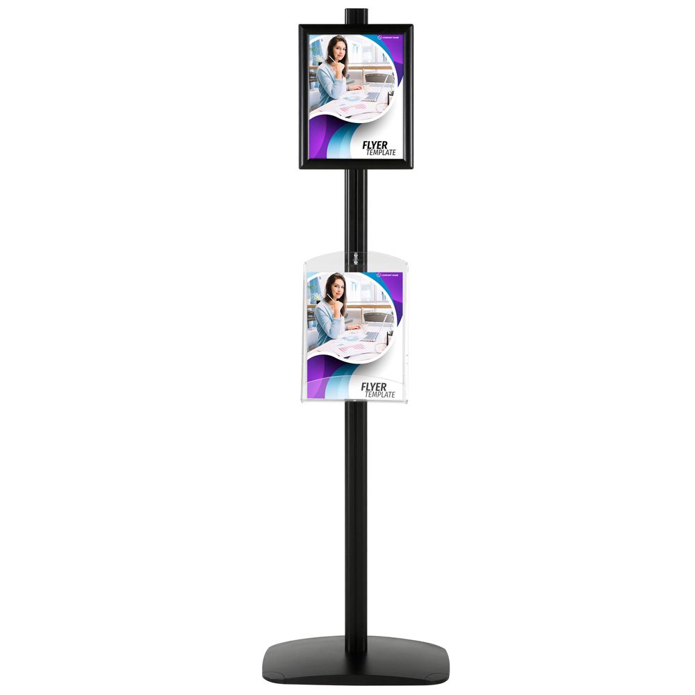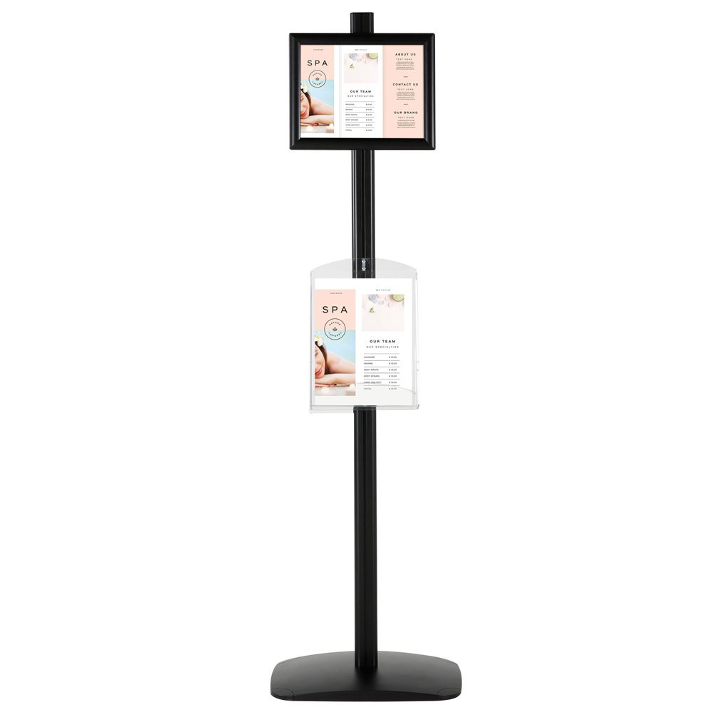 Double-Sided Black Poster Stand with Dual 8.5×11 Clear Literature Pockets