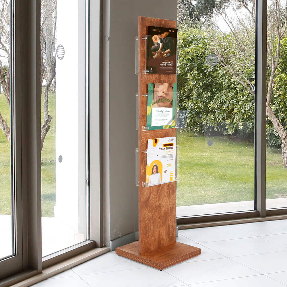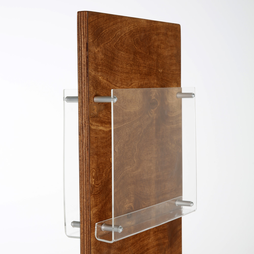 Double-Sided Dark Wood Plywood Poster Stand & Literature Holder – Black Finish, Fits 6 (8.5×11) Displays