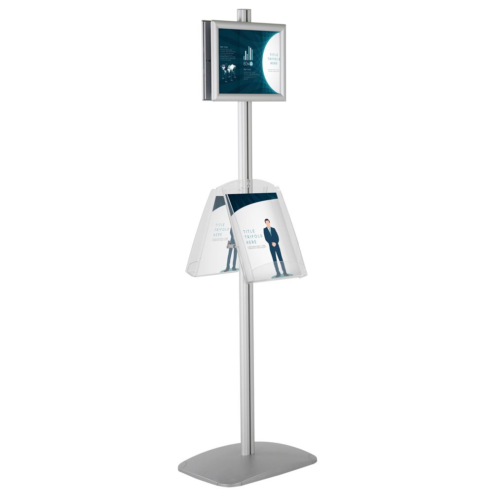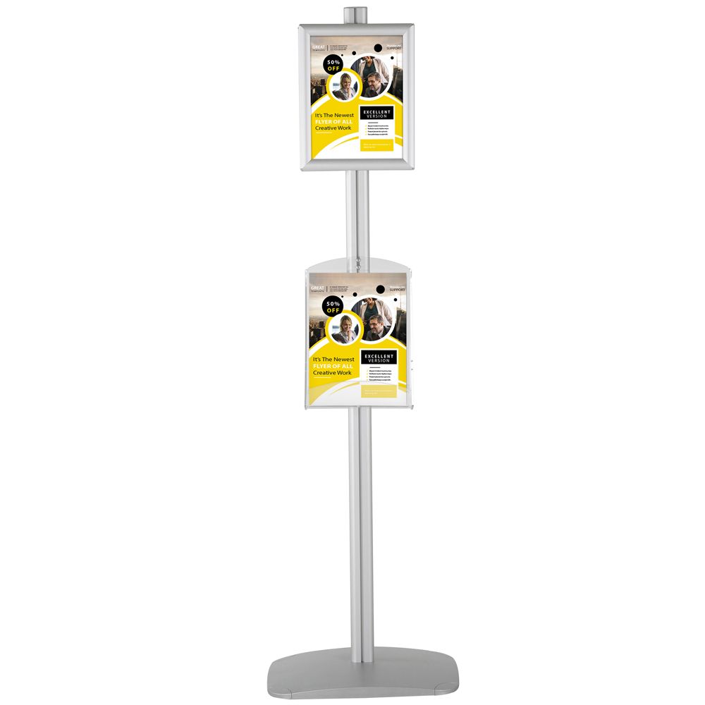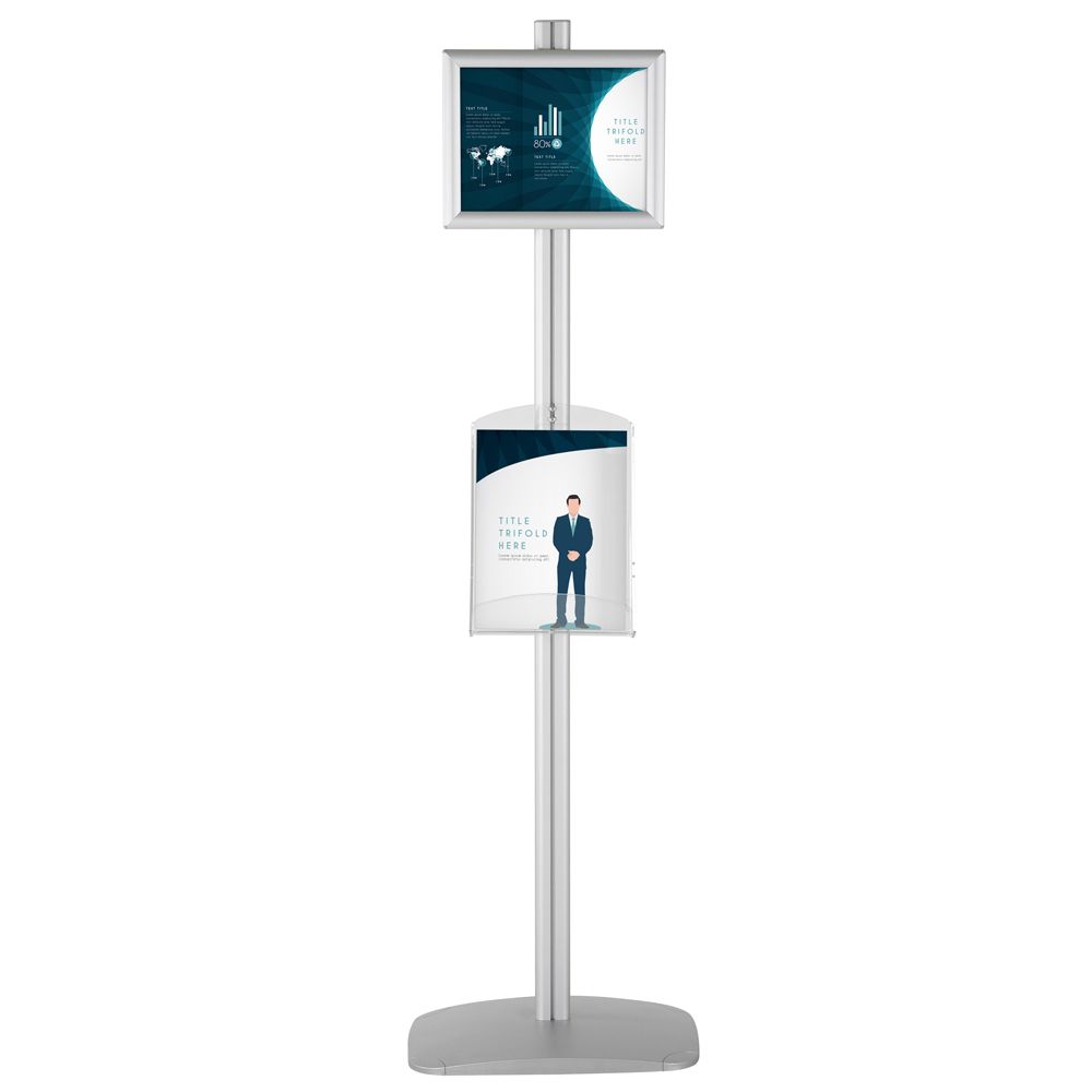 Double-Sided Silver Floor Poster Stand with Two 8.5×11 Clear Literature Pockets