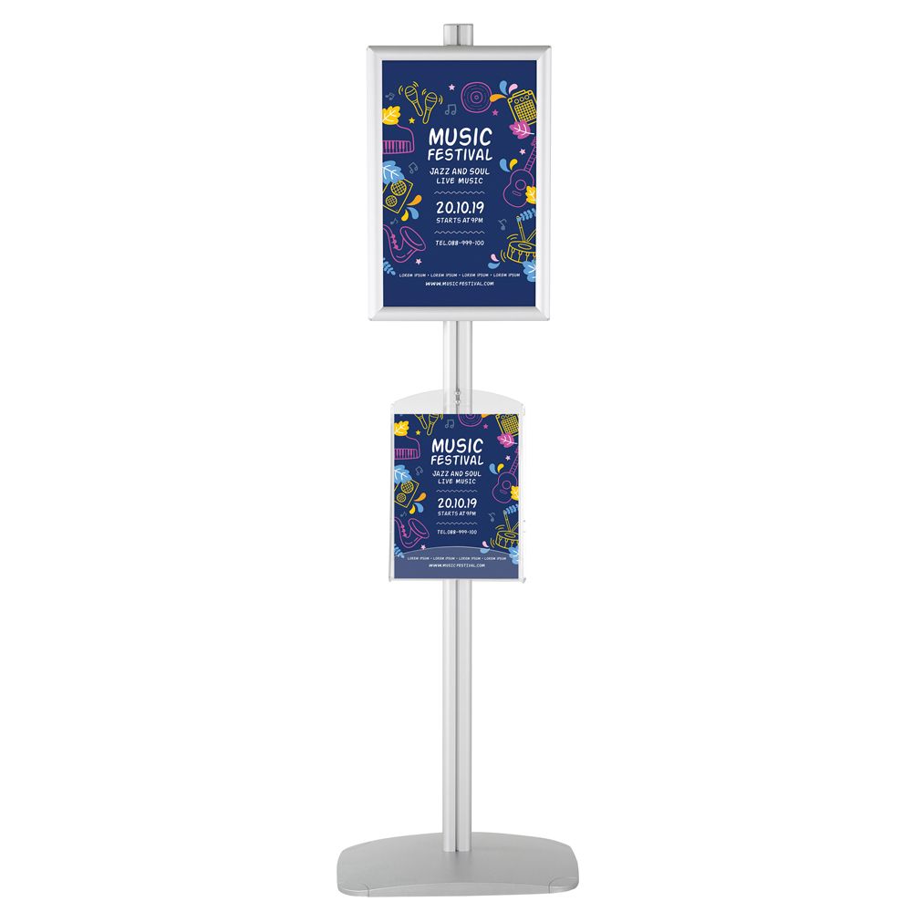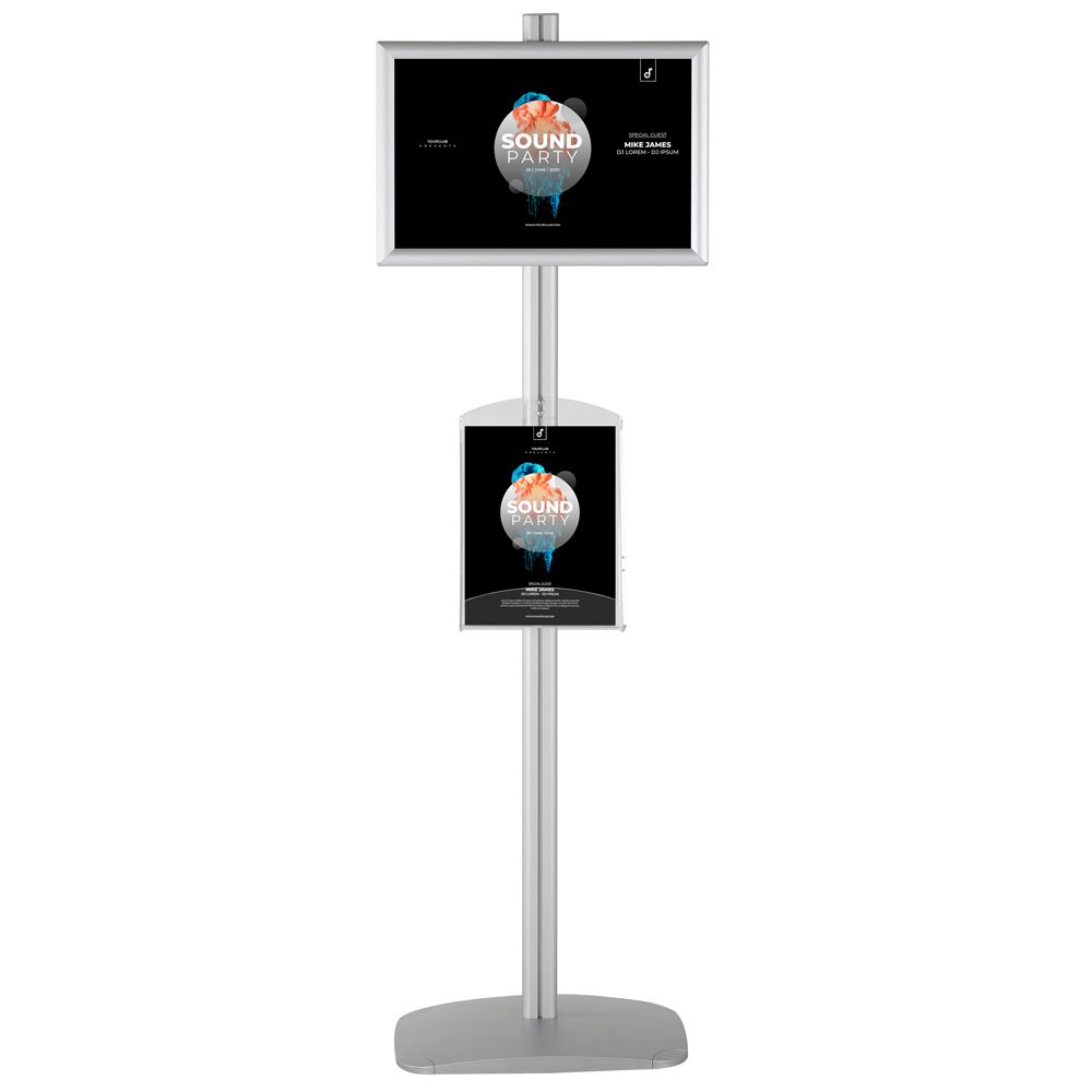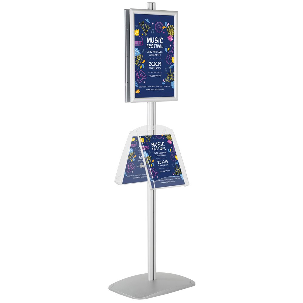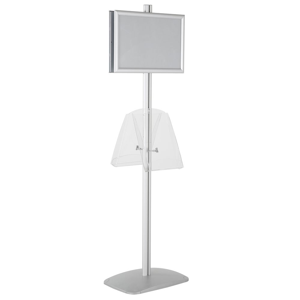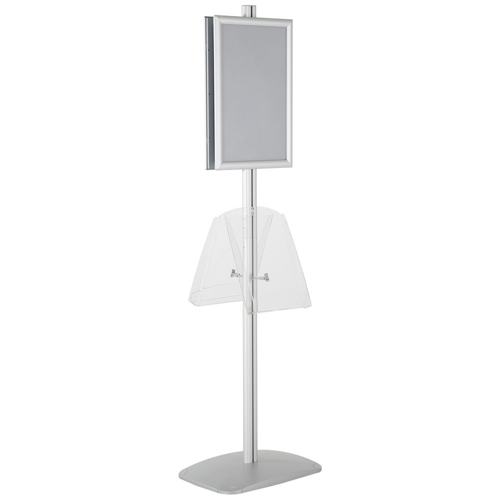 Double-Sided Silver Free-Standing Display with Literature Pocket – 2x (11×17) Panels & 2x (8.5×11) Clear Pockets