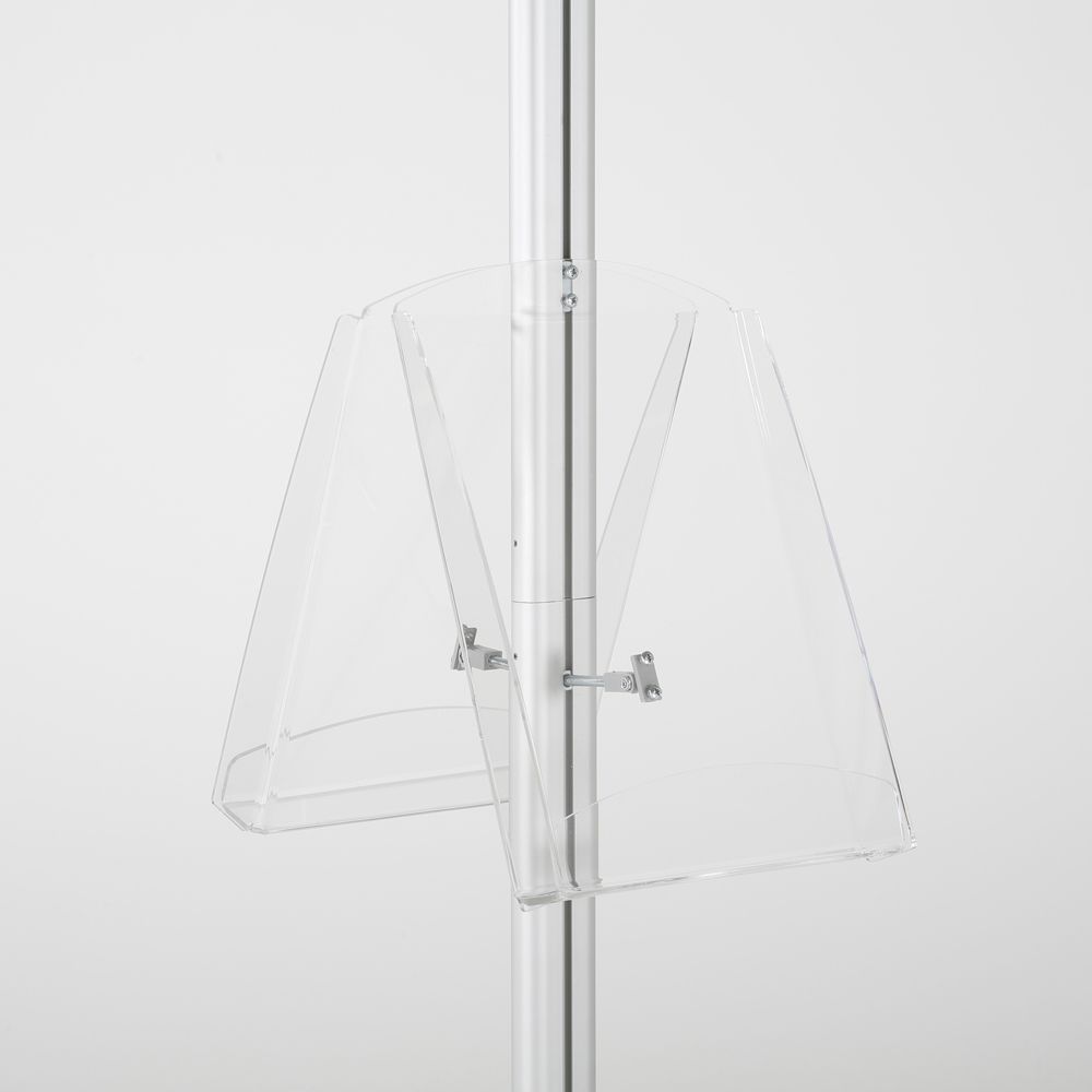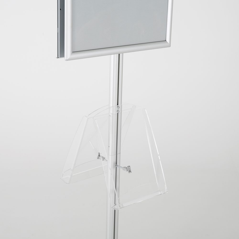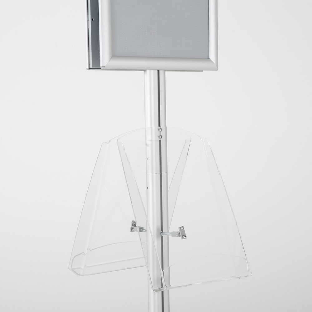 Introducing the perfect indoor brochure stand, designed to accommodate various models with ease. This versatile stand features frames and shelves that can be securely attached to the central pole, either individually or all at once, providing flexibility for your display needs. Standing at a height of 57.5 inches, this brochure stand is ideal for showcasing your materials in a professional and organized manner. Enhance your indoor presentations with this durable and functional brochure stand, perfect for trade shows, exhibitions, and retail environments.