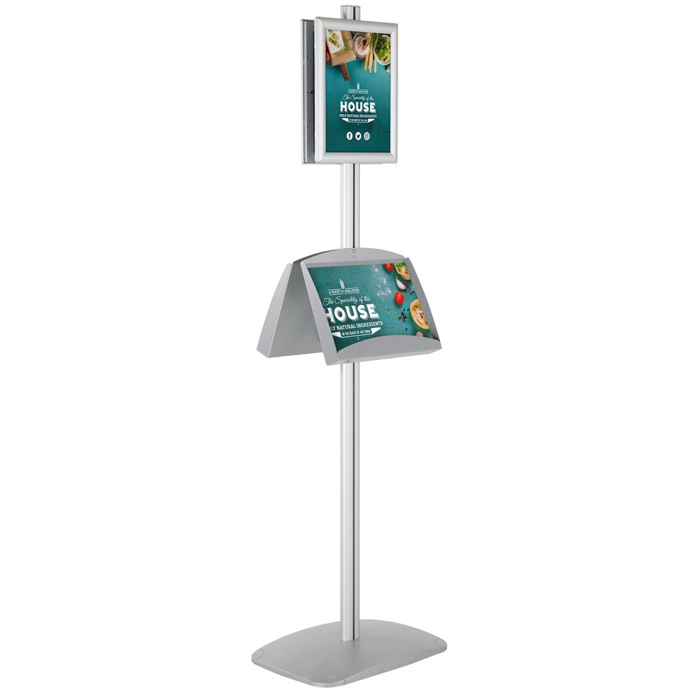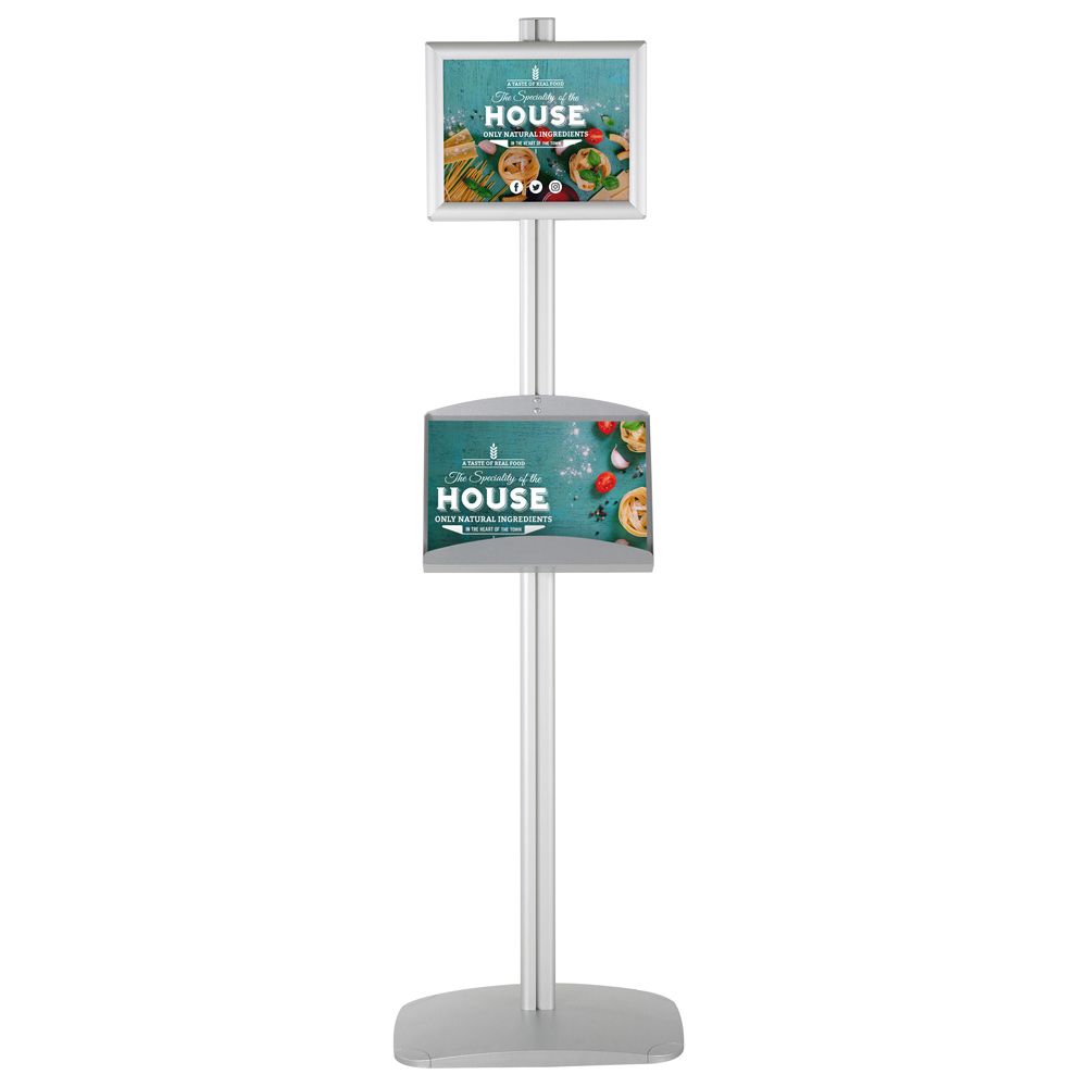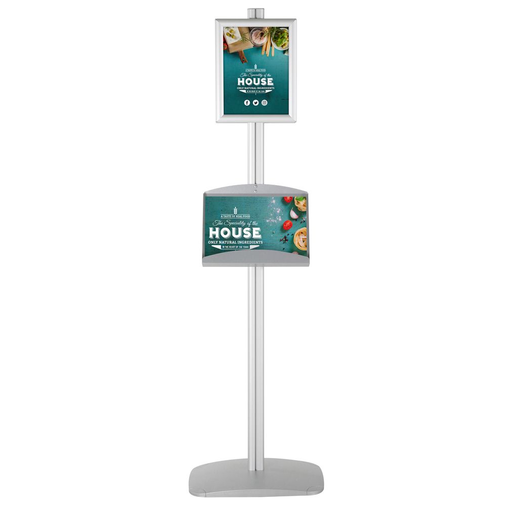 Double-Sided Silver Free Standing Display with Metal Trays – 2x (8.5×11) and 2x (5.5×8.5)
