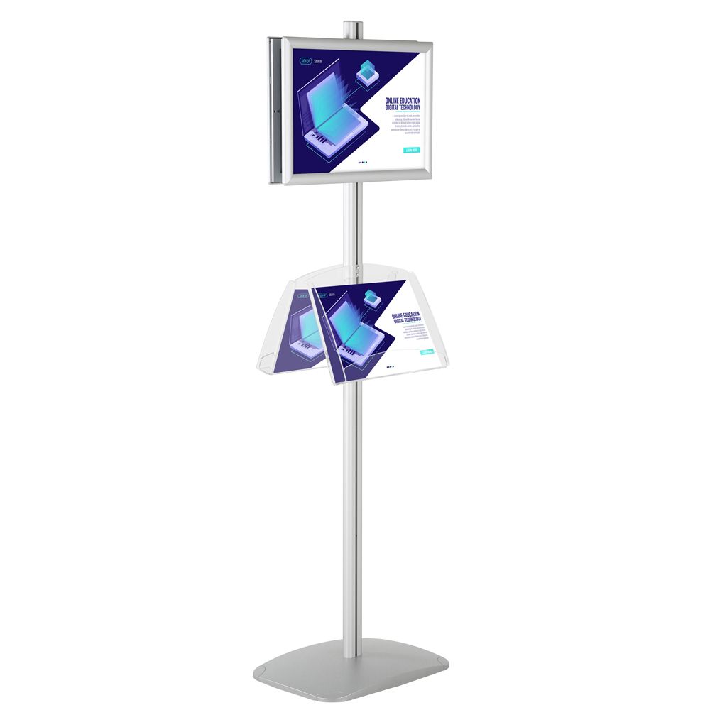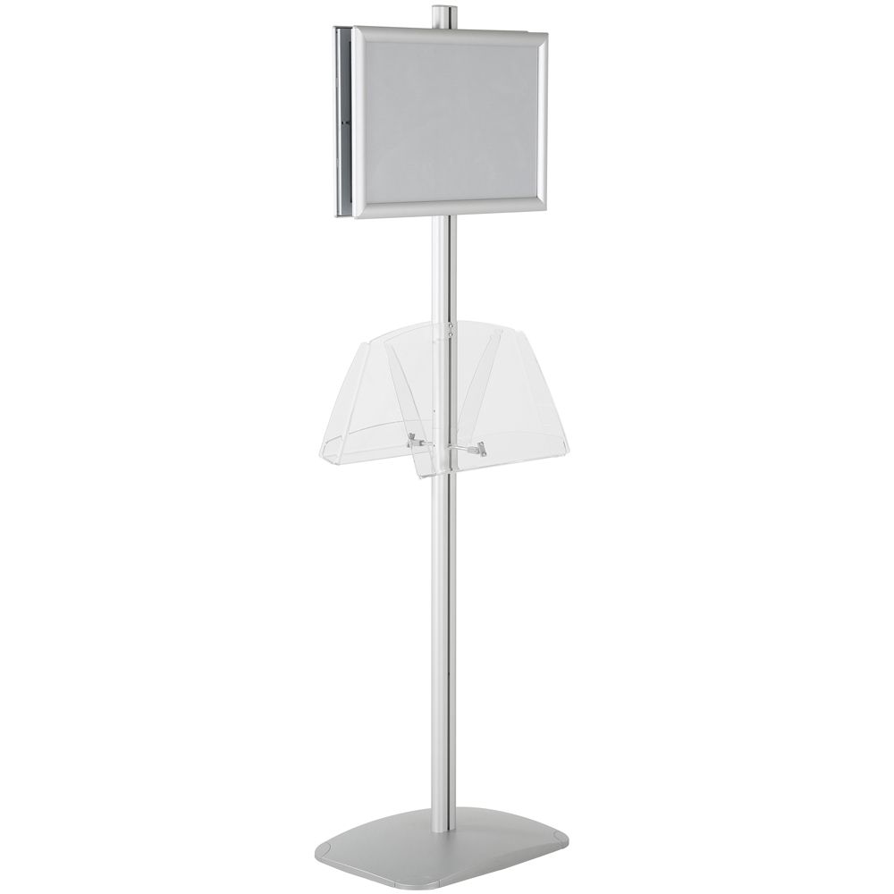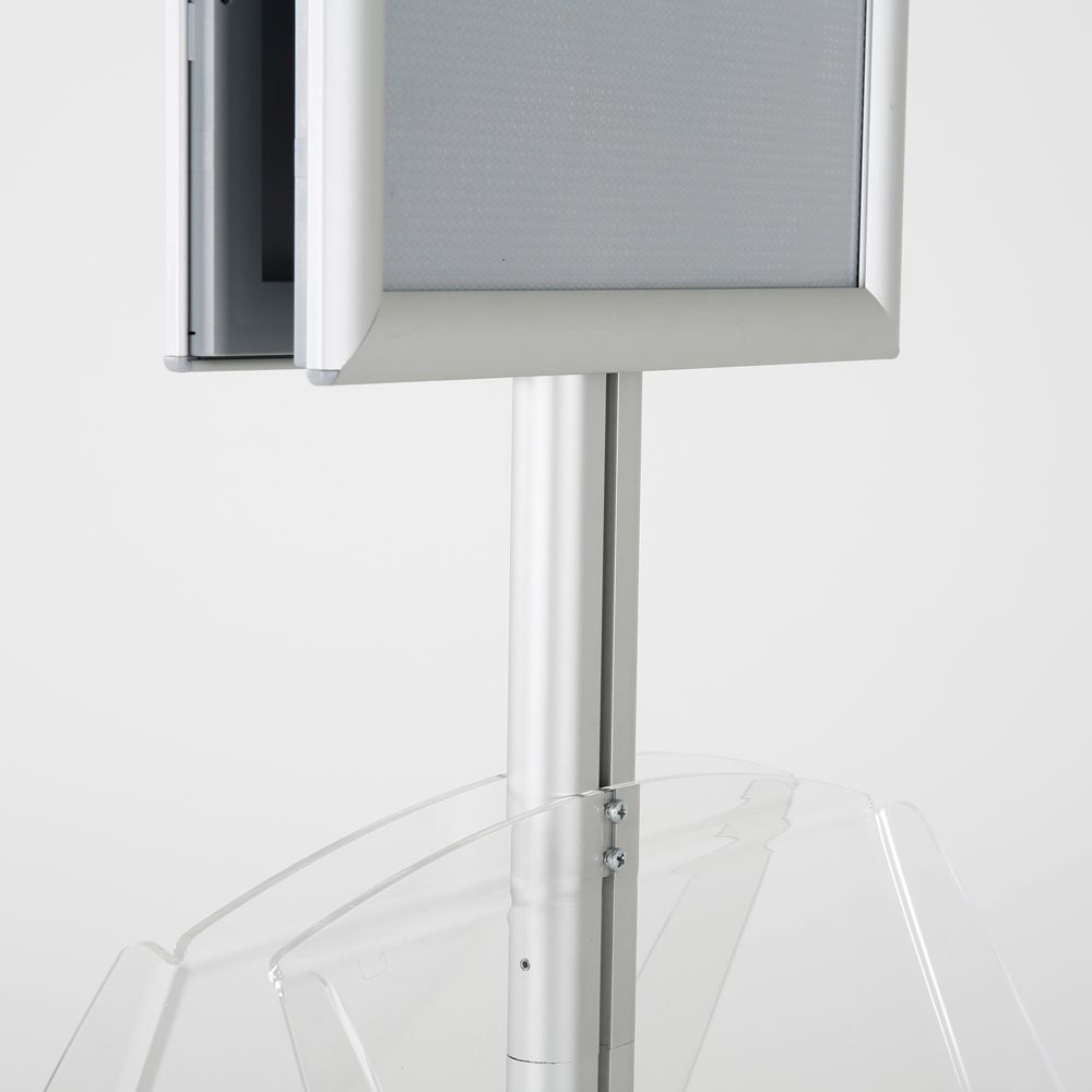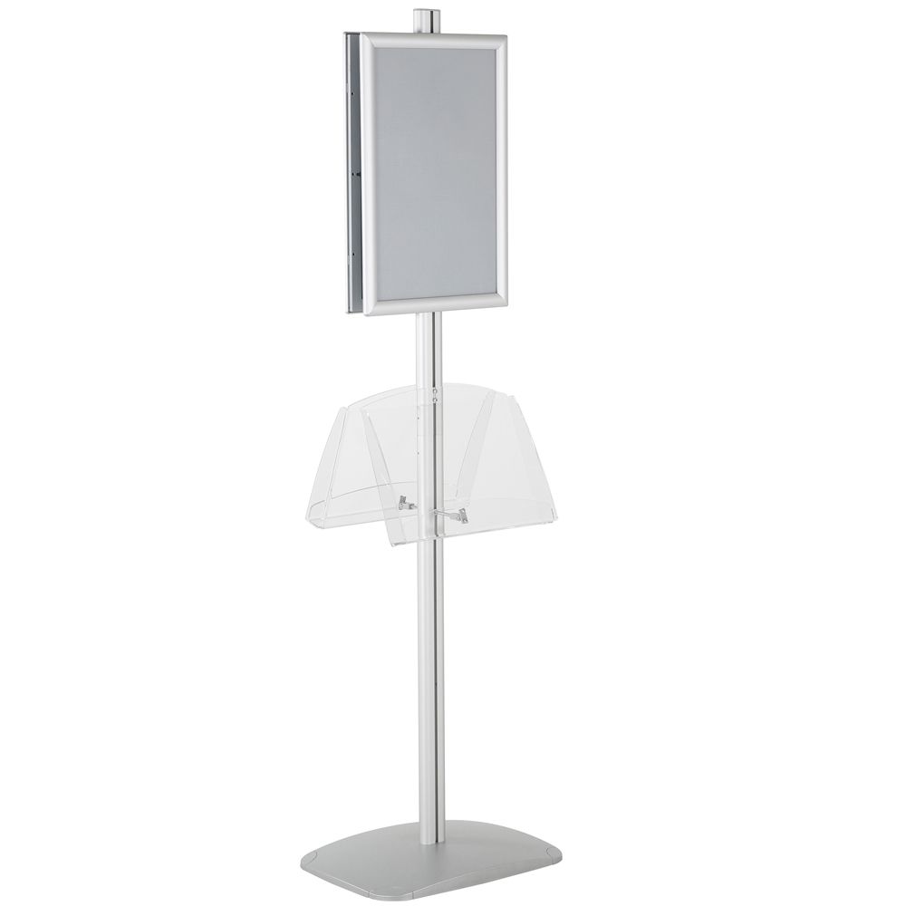 Double-Sided Silver Poster Stand with Two Clear Literature Pockets – Fits 11×17 and 5.5×8.5 Sizes