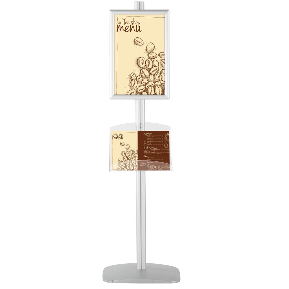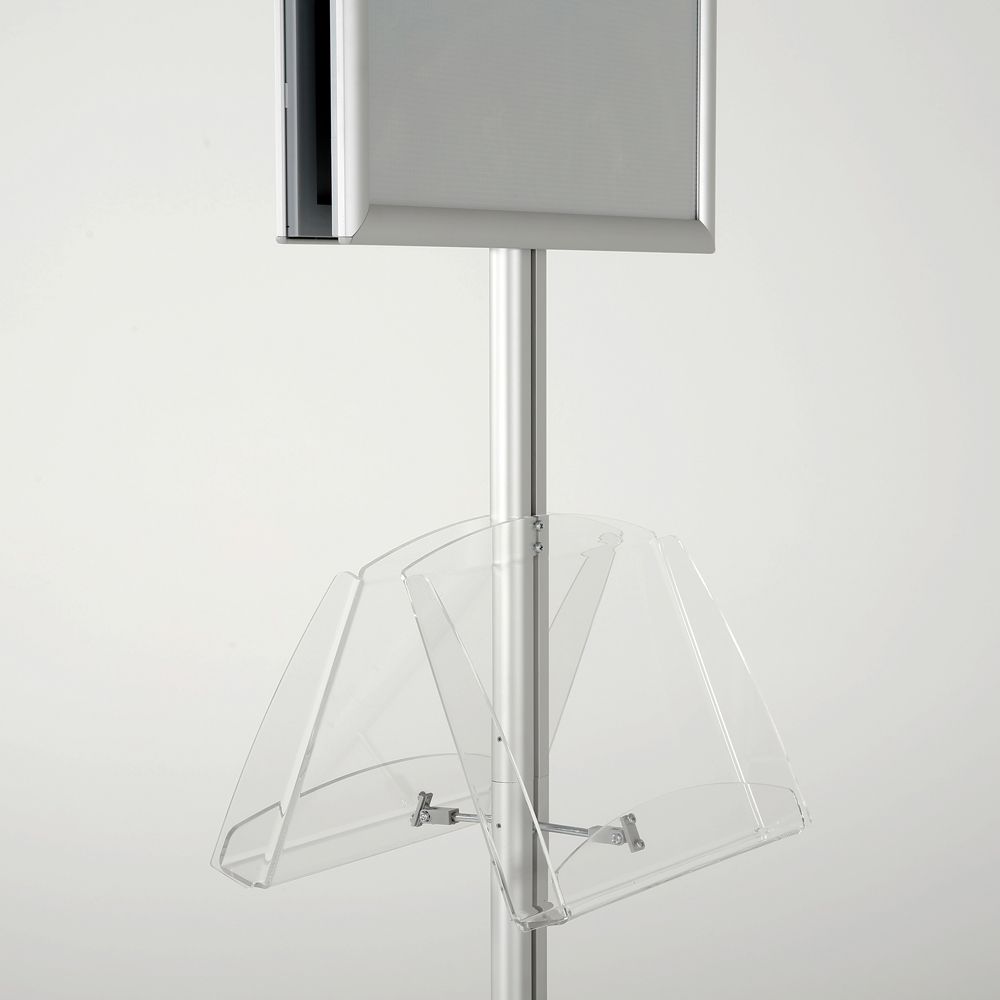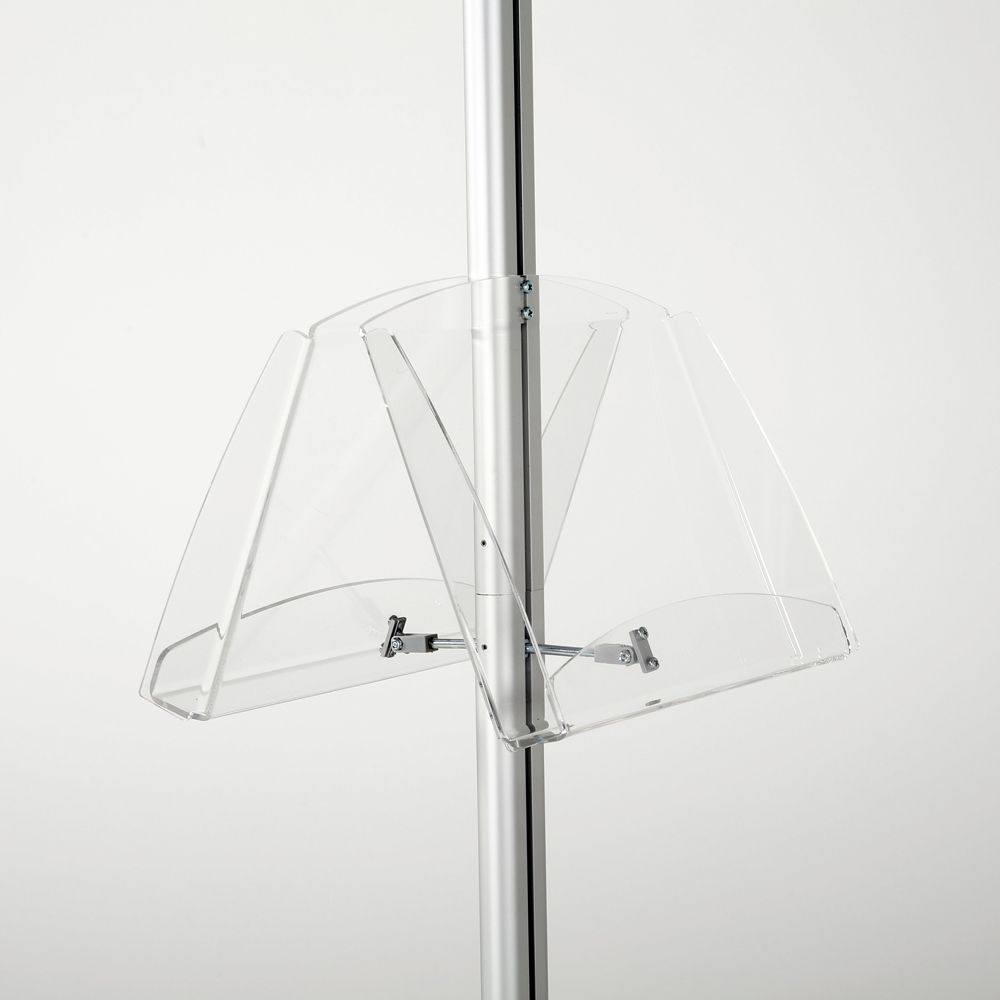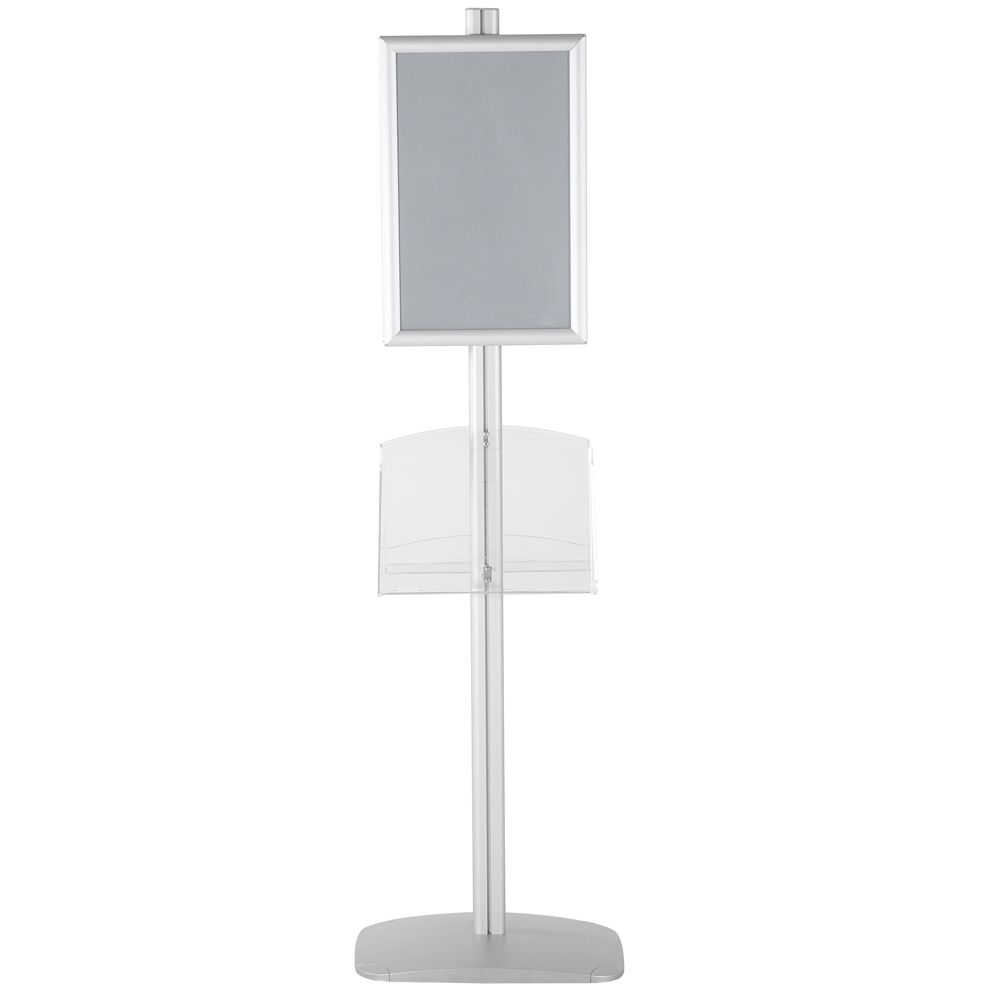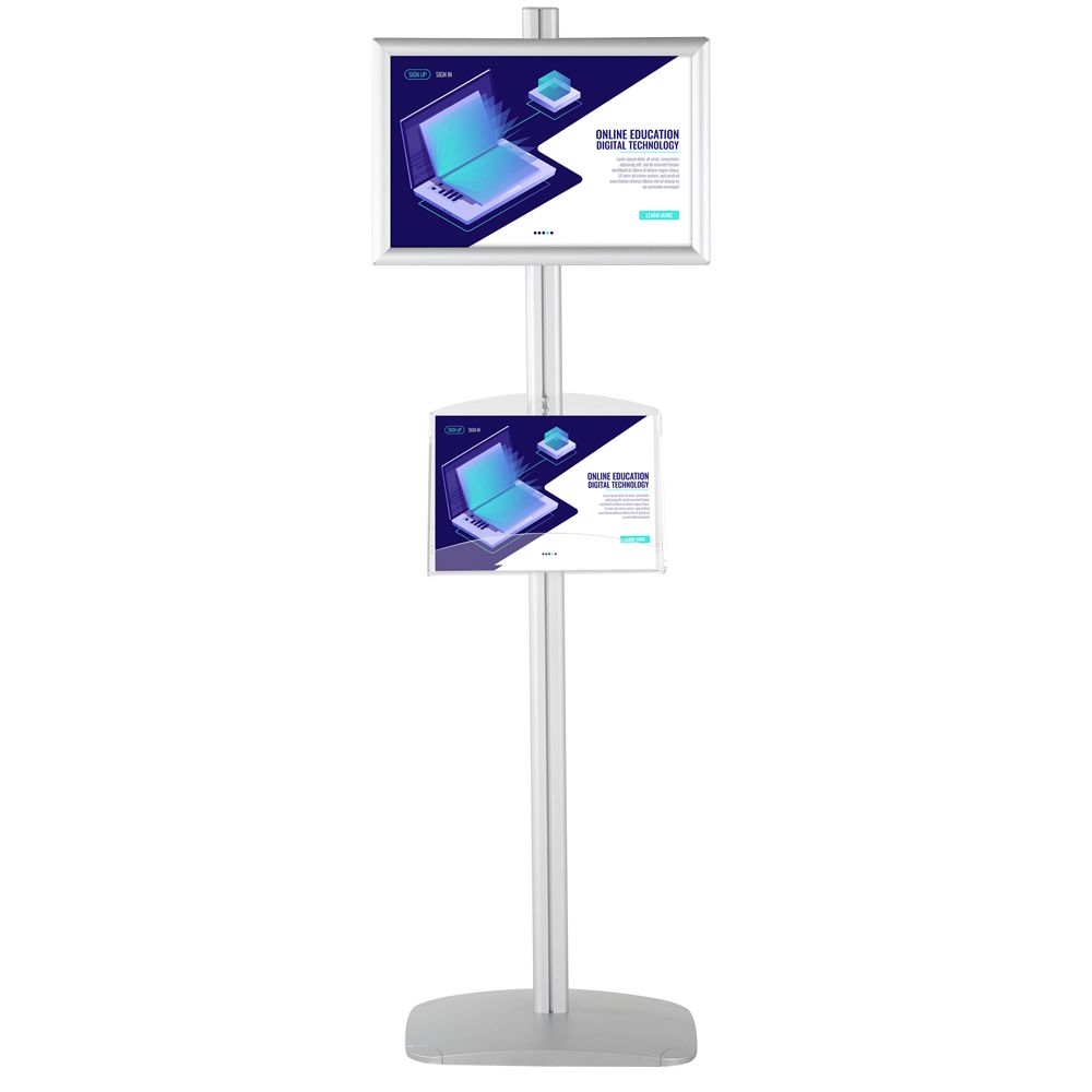 Double-Sided Silver Poster Stand with Two Clear Literature Pockets – Fits 11×17 and 5.5×8.5 Sizes