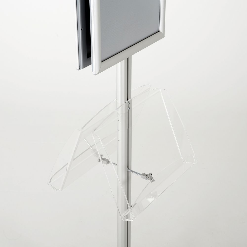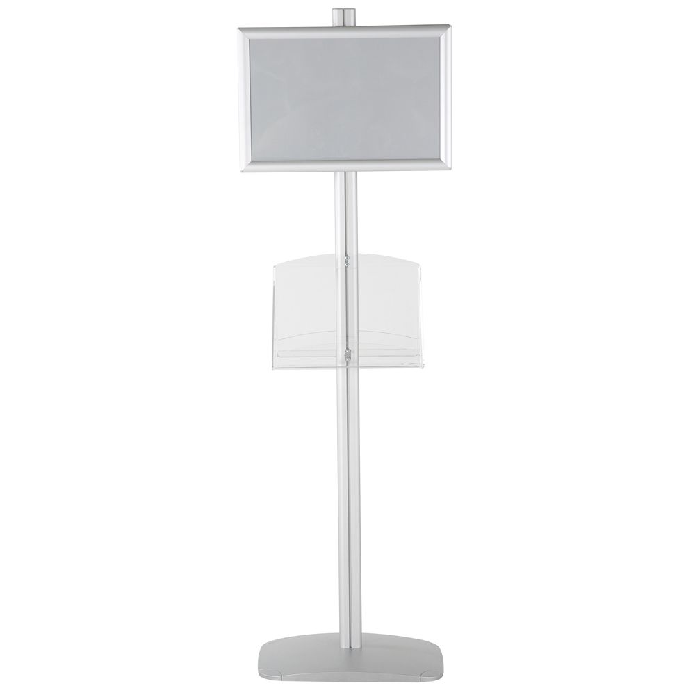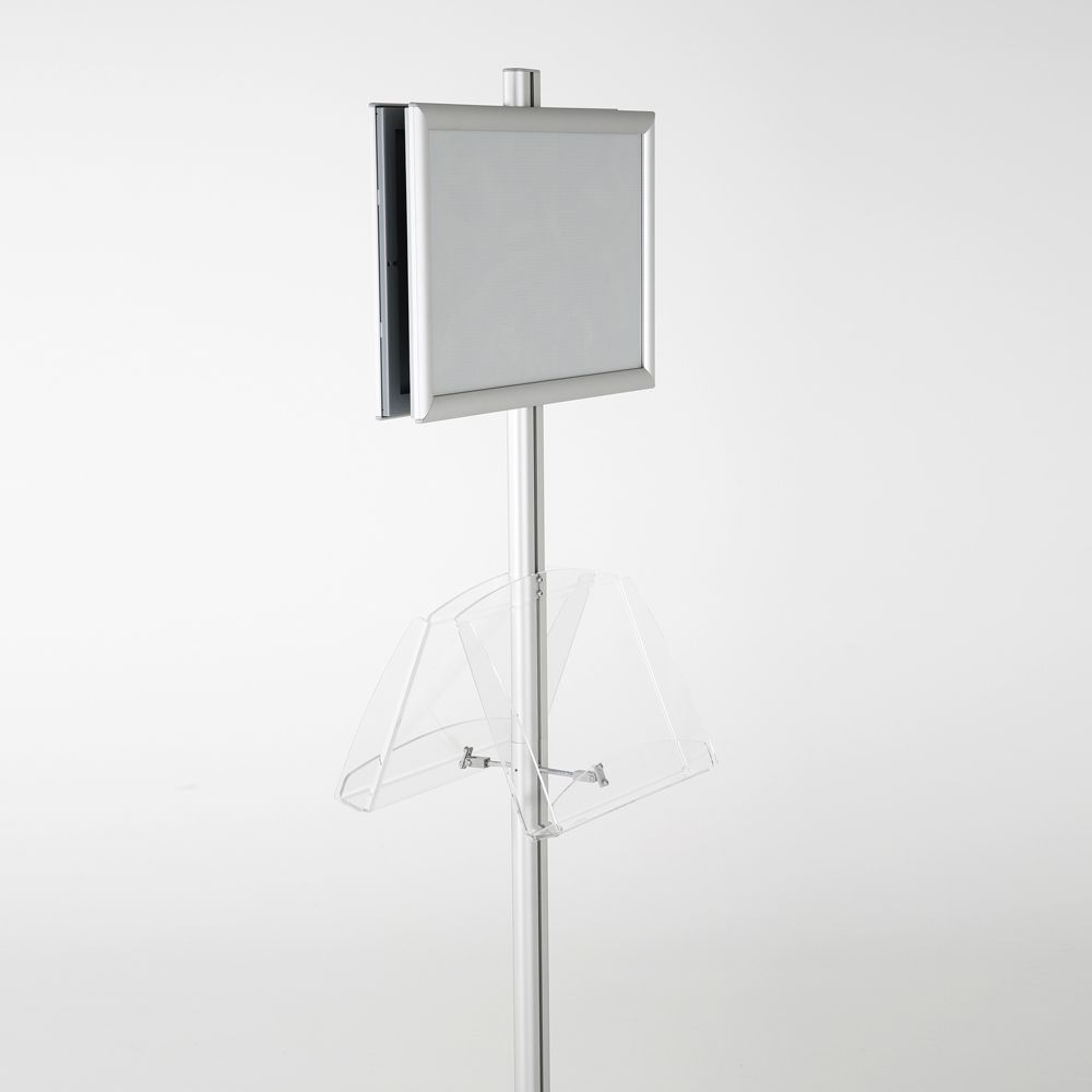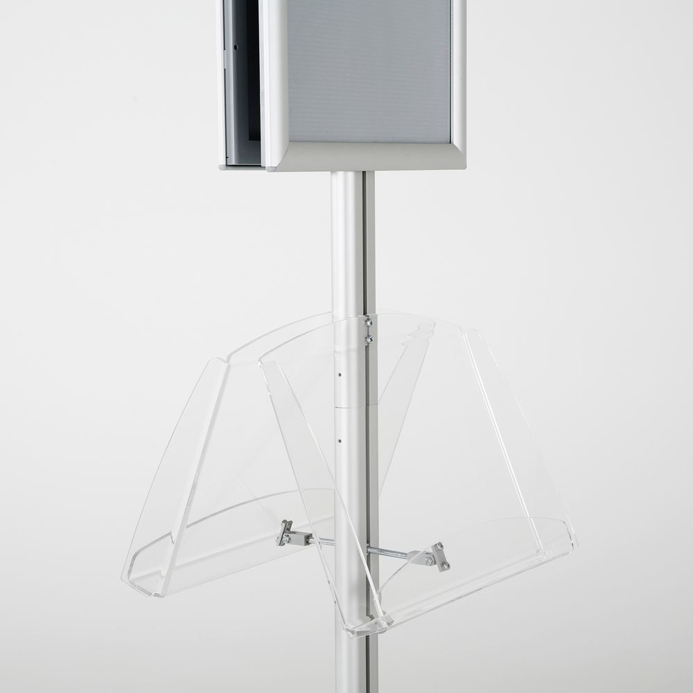 Double-Sided Silver Poster Stand with Two Clear Literature Pockets – Fits 11×17 and 5.5×8.5 Sizes