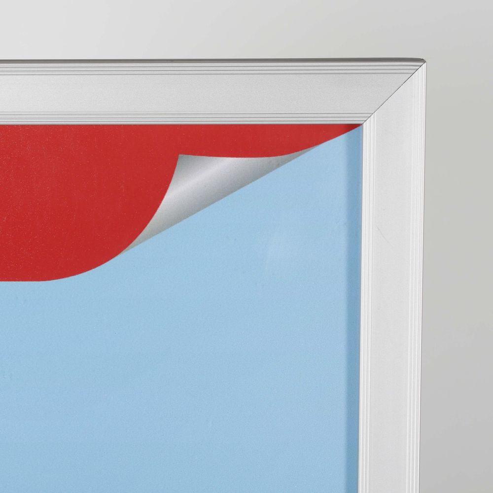 The use of this Slide-In info board is fairly easy and it is Double-Sided. You can load 2 signs back to back, visible on both sides. To load or change a graphic, Remove the backing with the anti-glare PETs. Position the poster between the backing and the PETs, slide the backing in. It allows a clear view of the print, poster and protects the artwork from dust and direct light.Suitable for indoor use. It is made of the finest materials while providing the highest level of quality. It has a sturdy cast iron profile with an anti-corrosive coating. The coating protects the frame from dust and light scratches.Having a stylish and simple appearance, large and eye-catching visual size, is the best information display stand for star hotels, restaurants, exhibitions, and other places. It suits every decoration in offices, restaurants, cafes, boutiques, bookstores, bakeries, and many more. You can effortlessly display your poster, advertisement, and even your menu at your business.