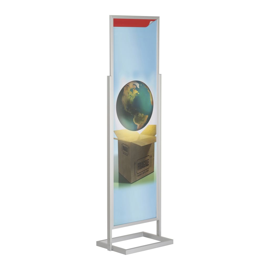 Eco-Friendly Silver Metal Double-Sided Pedestal Poster Holder Sign Stand, Slide-In Design, 22×69 Inch, 1-Tier Floor Standing Display