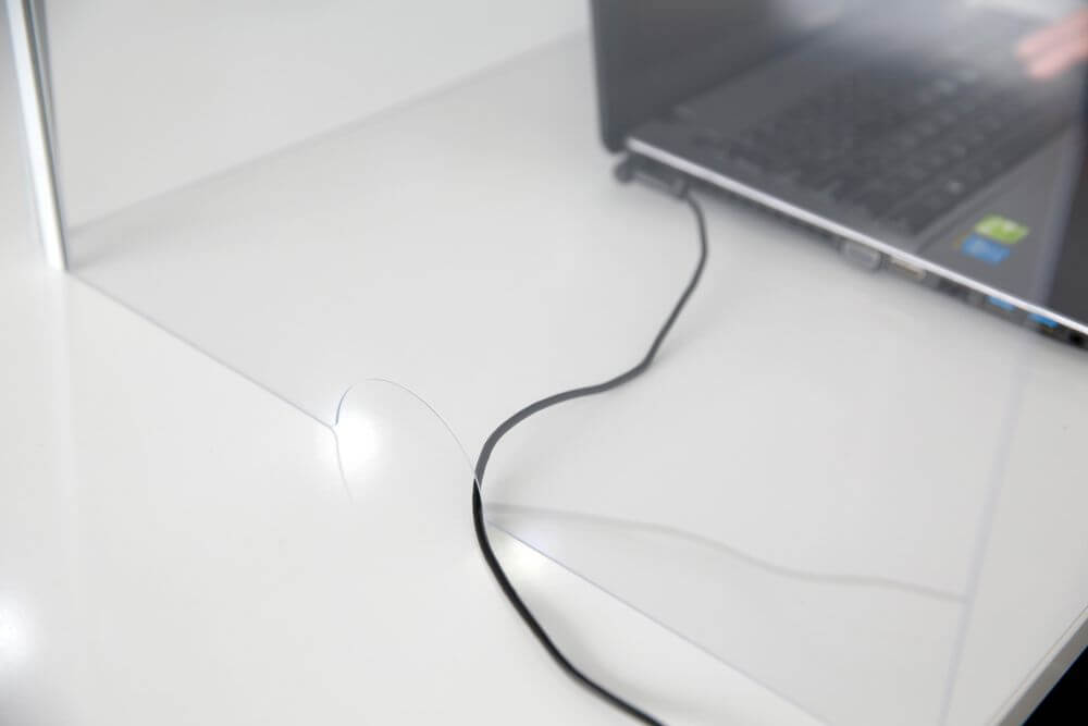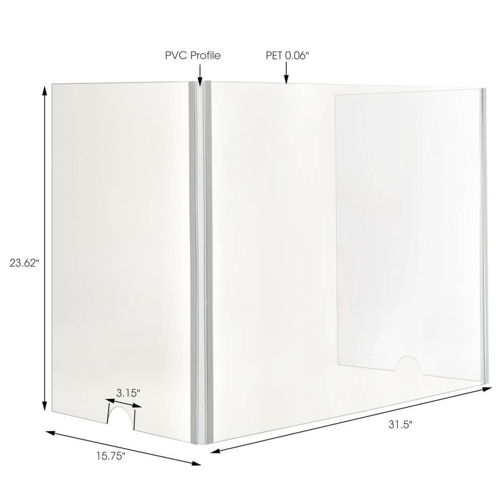This splash guard can easily be installed. Just fold out and place the screen on the workspace. Transparent PET material gives you a clear sight without blocking your view while protecting you from airborne droplets. It has a 3.15 inch hole for cable and cord transfer and management on the side panels.It is made of the finest materials while providing the highest level of quality. The PET is a durable, persistent, recyclable, and reusable plastic that is universally recognized as a safe and non-toxic material.Sneeze guard is great for shielding yourself from airborne contaminants. It can be used wherever there is a need to limit contact with third parties - in offices, schools, shops, banks, grocery stores, reception desks, or pharmacies. Easy to store, easy to install. Can be easily moved. It can be customized with markers and stickers. It can be used as a background template for macro photo shots or showcases.