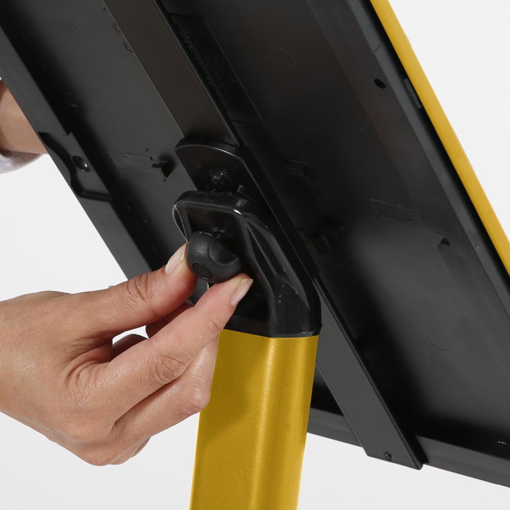 Opti Frame is M&T Displays's patented (US 2009/211134) Snap frame which eliminates the flaws of standard snap frames. Instead of using plain back cover, we use textured durable plastic casing which has ready for wall mounting with 2 holes on both long sides. Wall hanging is also available with wall hanger holes placed on short and long sides. Optional counter support offers a new counter stand on portrait and landscape position.It is made of the finest materials while providing the highest level of quality. Powder-coated Aluminum body ensures durability without sacrificing exquisite posture. Round metal base ensures stability.It can be used as a Sign Holder, Menu Holder, Poster Holder in hotels, galleries, museums, restaurants, cafes, lobby, bars, and more. Frame can be used in portrait and landscape positions. This sign holder is suitable for indoor usage.