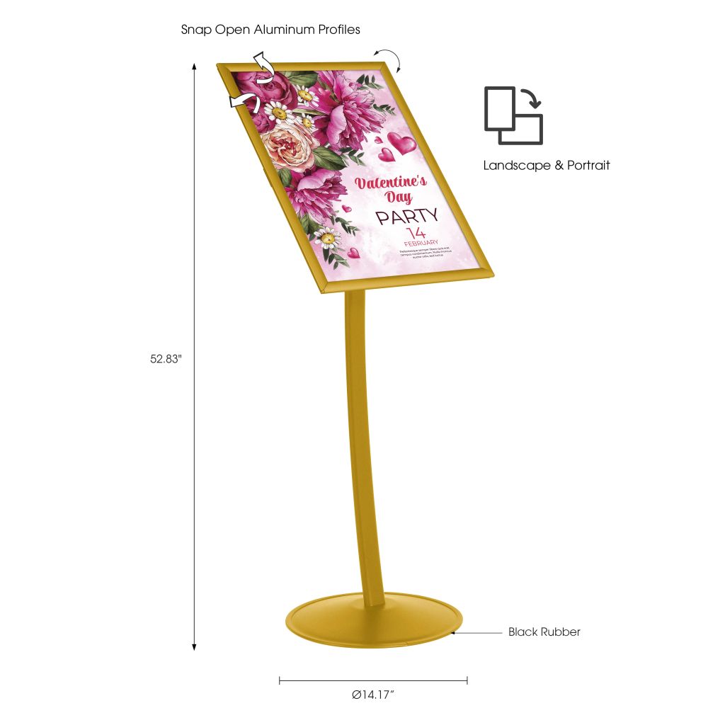 Gold Floor-Standing Pedestal Sign Holder for Restaurant Menu Board, 18×24 Inches