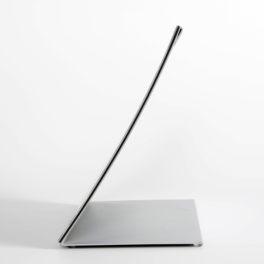 Gray 8.5×11 Arc Desktop Menu Holder with Curved Steel Panel, Landscape Orientation, Set of 2