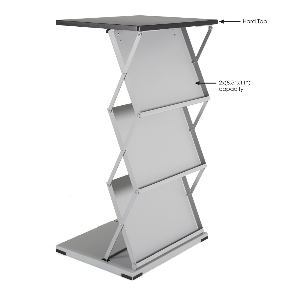Gray-Black Foldable Counter with Steel Literature Holder & Carrying Bag – 2x(8.5×11) Display Stand for Events & Trade Shows