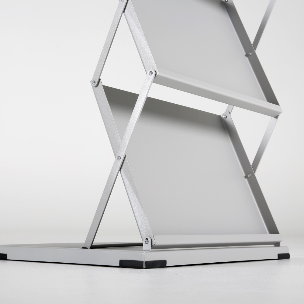 Enhance your media display with this versatile literature holder rack, designed for easy loading and organization. Featuring three spacious racks, it accommodates magazines, brochures, catalogs, leaflets, and flyers up to 8.5×11 inches in size. Perfect for showcasing your materials in a professional and accessible manner, this literature holder is an ideal solution for offices, trade shows, and retail environments.