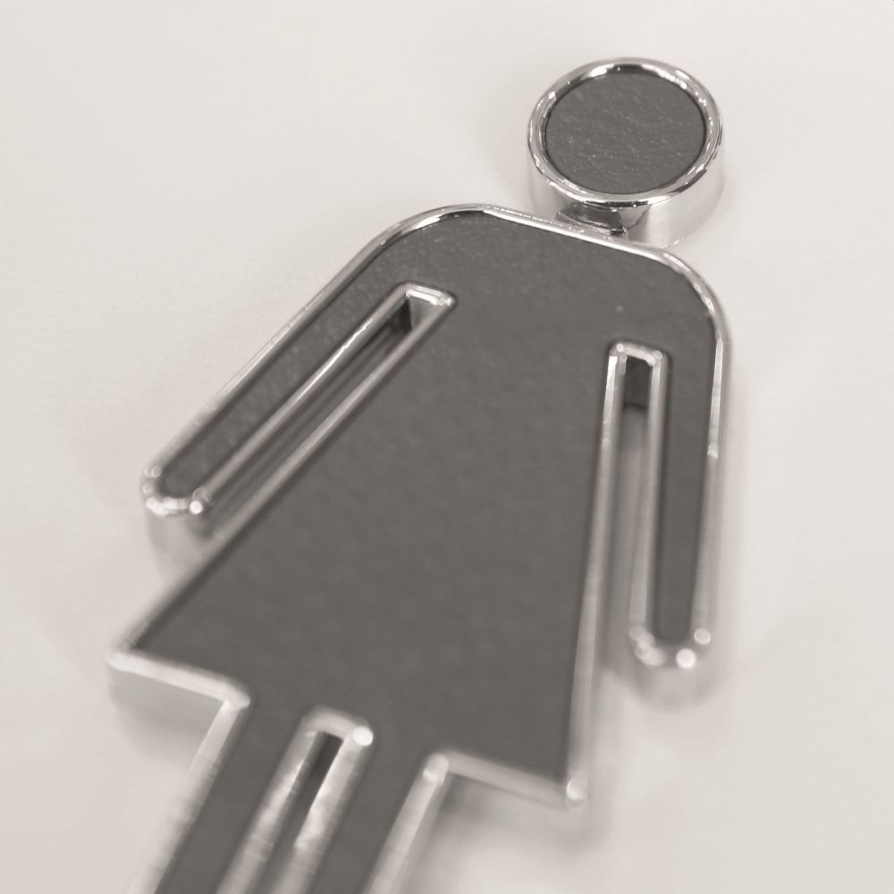 “Gray Chrome-Coated Women’s Restroom Sign – 3.94″ High Panel”