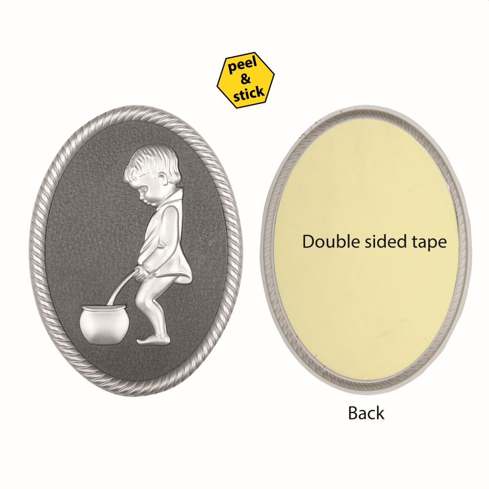 Men’s Oval-Shaped Silver Framed Plastic Toilet Sign