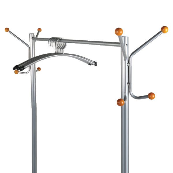 Modern style 46x68x17 inches metal coat hanger stand with 4 wheels is suitable for contemporary decorated environments. Hangers have round wooden fittings to prevent damage to clothing. It has an elegant look with silver powder coated body. Perfectly stable free standing hanger is suitable for coats, hats, purses, children’s clothes and more. Height of the coat rack is 68.5 inches. Each product comes unassembled with an instruction sheet explaining how to set and use. Supplied with 6 matching coat hangers.