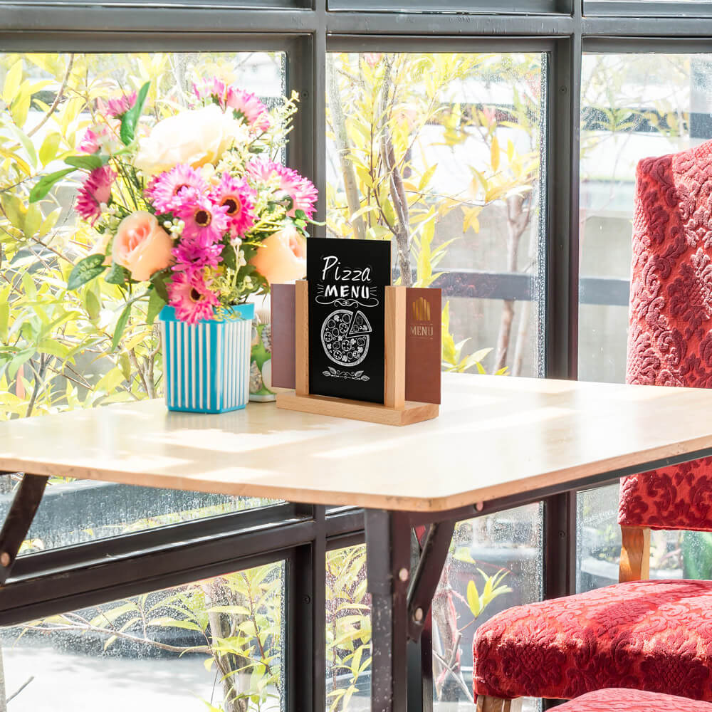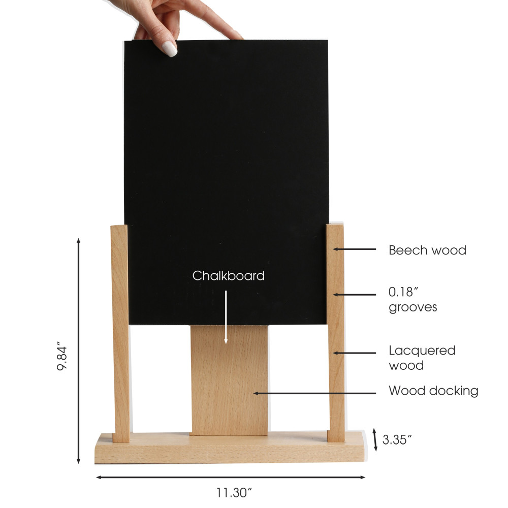 Enhance your display with our innovative U-Shape Pocket Chalkboard, designed for effortless top-loading and easy maintenance. This versatile, double-sided chalkboard allows for quick content changes and can be flipped to maximize usage. Crafted with a durable 0.12-inch (3mm) thick blackboard panel, it ensures longevity and reliability. The integrated wood docking feature provides additional storage space, perfect for organizing brochures, napkins, and other essentials behind the chalkboard. Ideal for businesses seeking a practical and stylish solution for their display needs, this chalkboard is a must-have for efficient and attractive presentations.