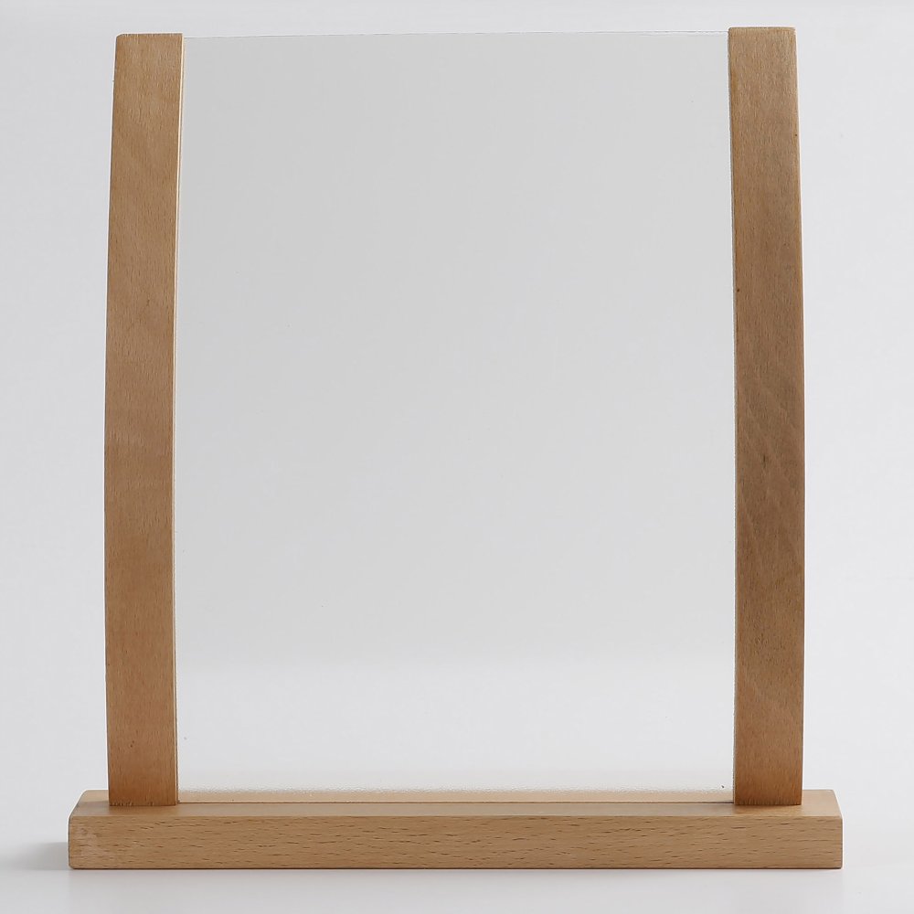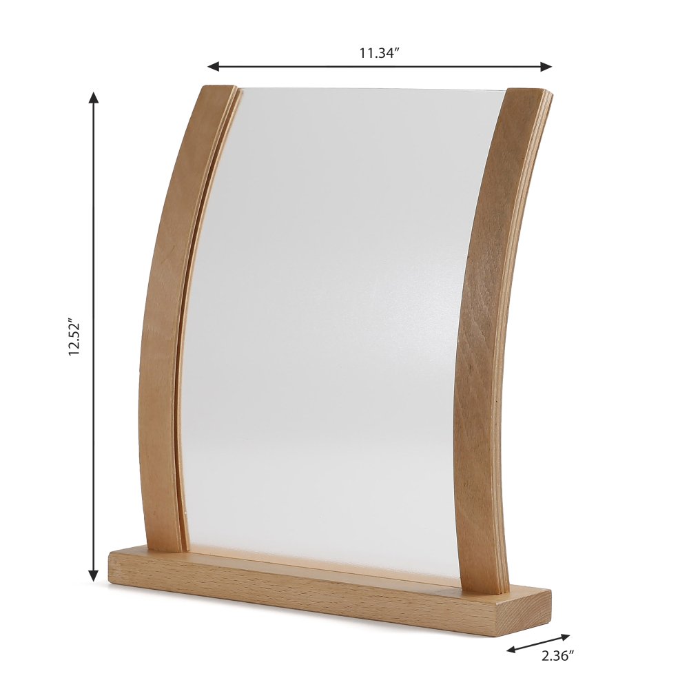 Natural Wood Curved Desktop Menu Holder with Pocket, 8.5″x11″ (Set of 2) – Elegant Display Stand for Restaurants and Offices