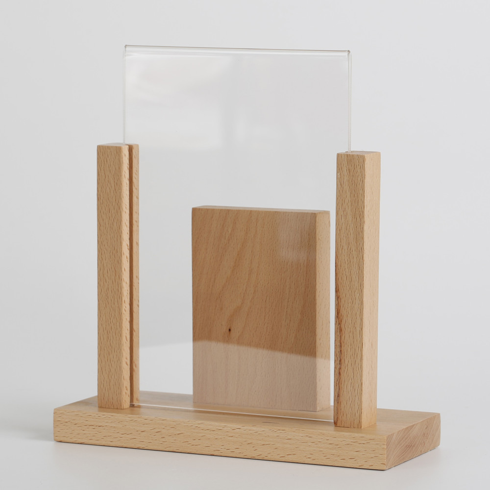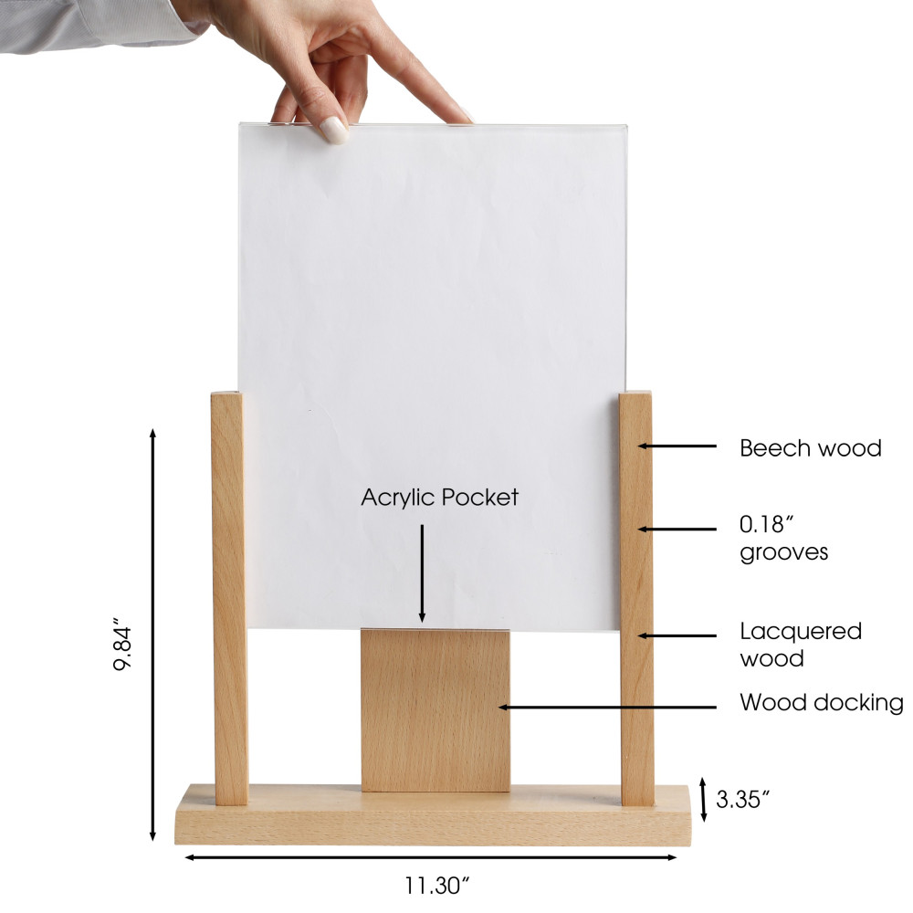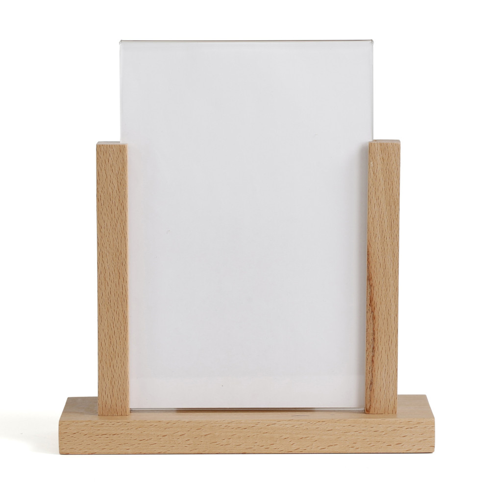 Natural Wood Duo Straight Desktop Menu Holder with Acrylic U-Type Pocket (2 Pack, 8.5×11) – Elegant Display Stand for Restaurants and Offices