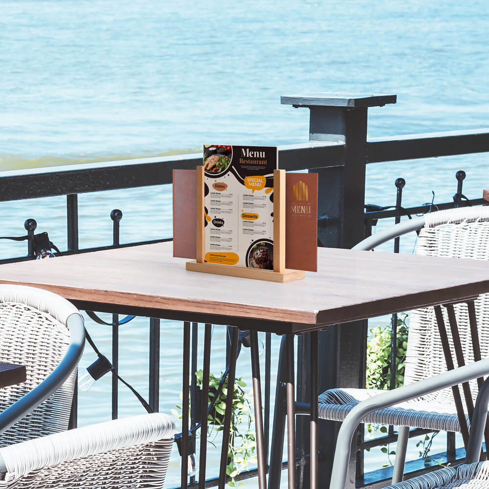 Enhance your menu display with our innovative U-Shape Pocket design, allowing for effortless top-loading of paper to safeguard against tampering and ensure quick and easy content updates. The durable acrylic pocket shields your menus from potential hazards such as food spills and fizzy drink splashes, maintaining a pristine presentation. Additionally, the integrated wood docking feature provides convenient storage space for stacking various items like brochures, napkins, and more, keeping your service area organized and efficient. Perfect for any dining establishment, this versatile solution combines functionality with style.