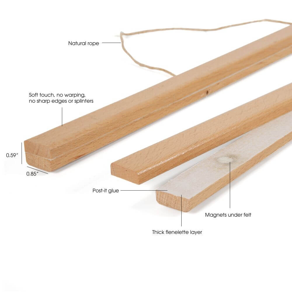 Equipped with super powerful magnets, this hanger can securely hold up to 4.40 pounds, ensuring your artwork stays in place. The inner wooden bar features a thick flannelette layer, expertly designed to prevent any slipping, keeping your display neat and tidy.