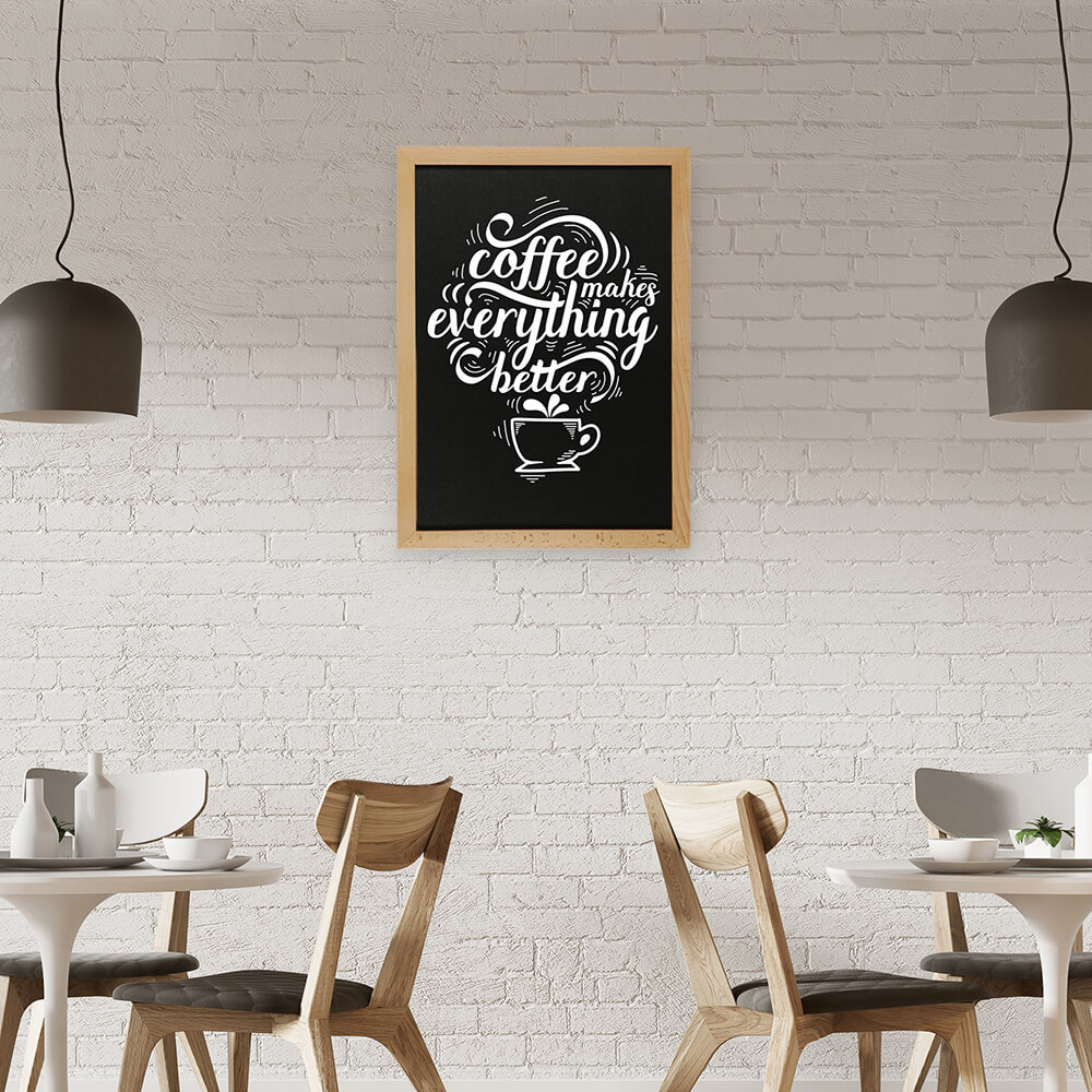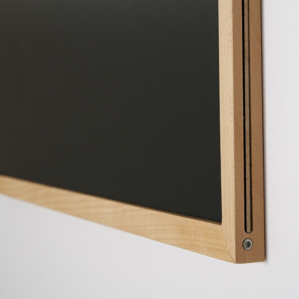 Introducing our premium wooden frame, crafted from high-quality wood sourced from Europe’s largest hardwood producer and a global leader in timber. This frame is the result of a highly automated and efficient production process, designed to meet the most stringent quality standards in the display industry. The optimized drying process ensures low-stress wood and consistent coloring, providing a durable and aesthetically pleasing product. The frame features a convenient Slide-In design, allowing you to easily insert the chalkboard from the top without needing to remove the frame from the wall. Perfect for both home and office use, this frame combines functionality with elegance, making it an ideal choice for showcasing your messages or artwork.