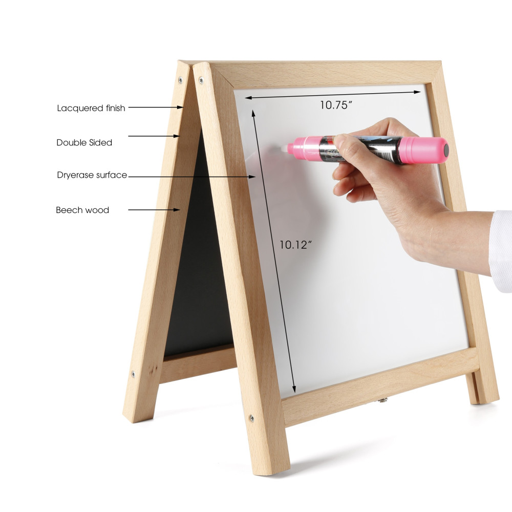 Natural Wood Tabletop Mini A-Frame Chalkboard with Erasable Magnetic Surface, White 12×24 – Perfect for Home, Office, or Events