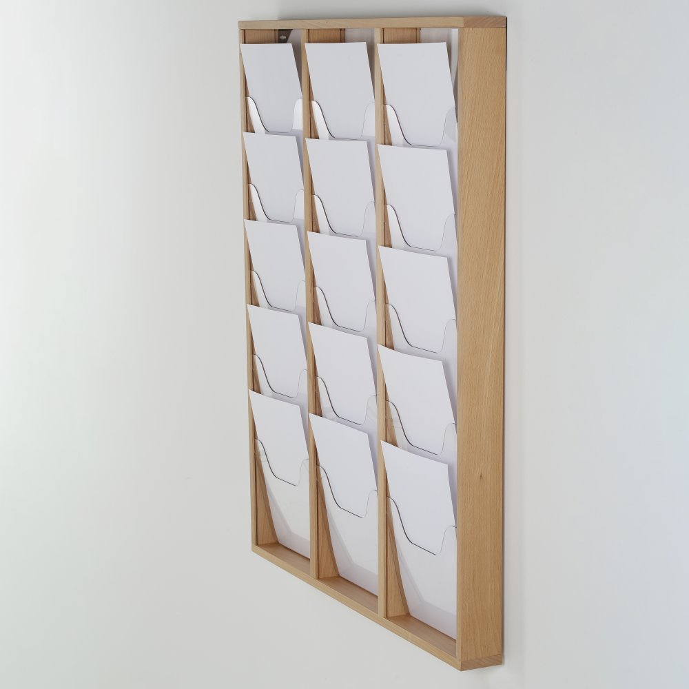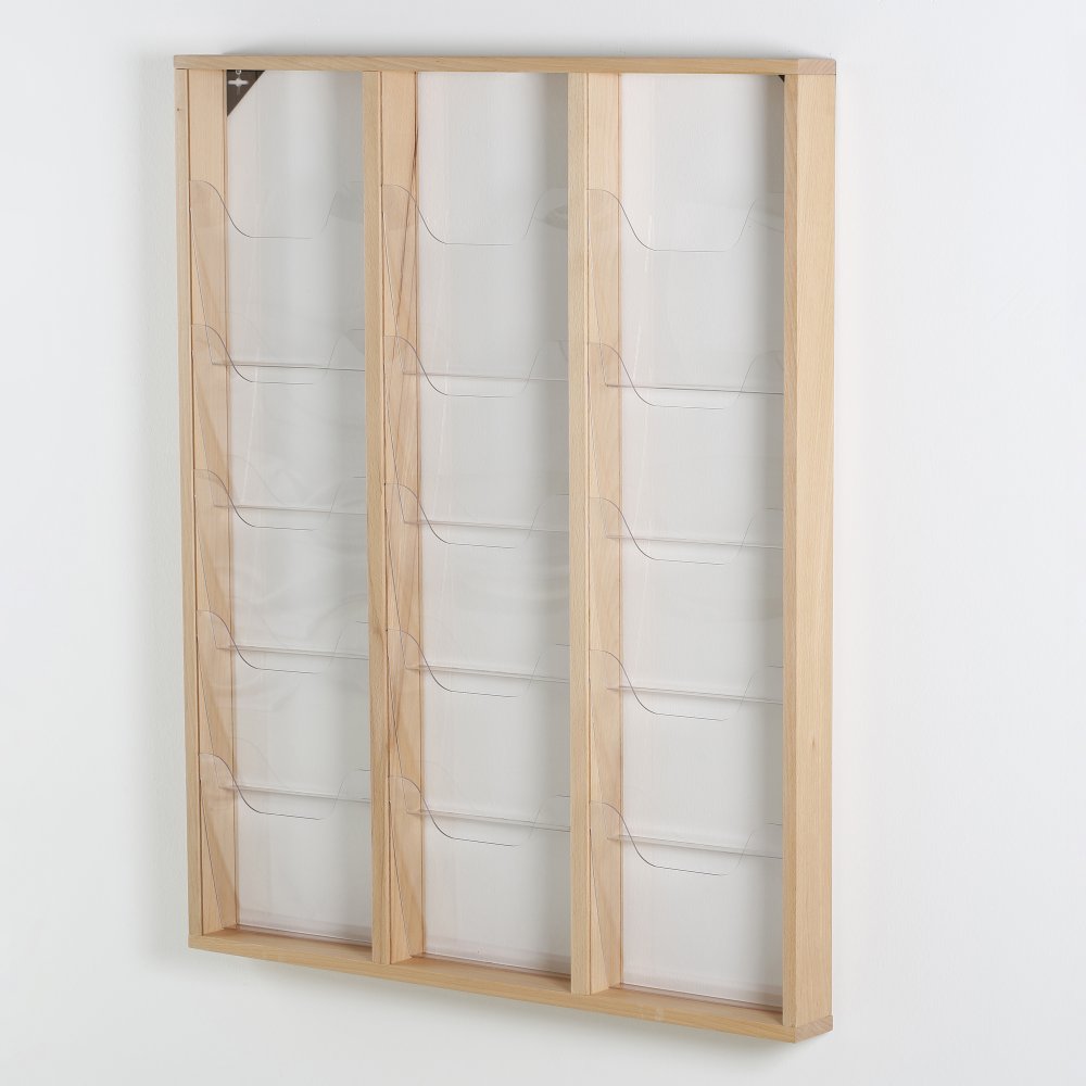 Natural Wood Wall-Mounted Magazine Rack, 15xA4 Size, Holds 3×5 and 8.5×11