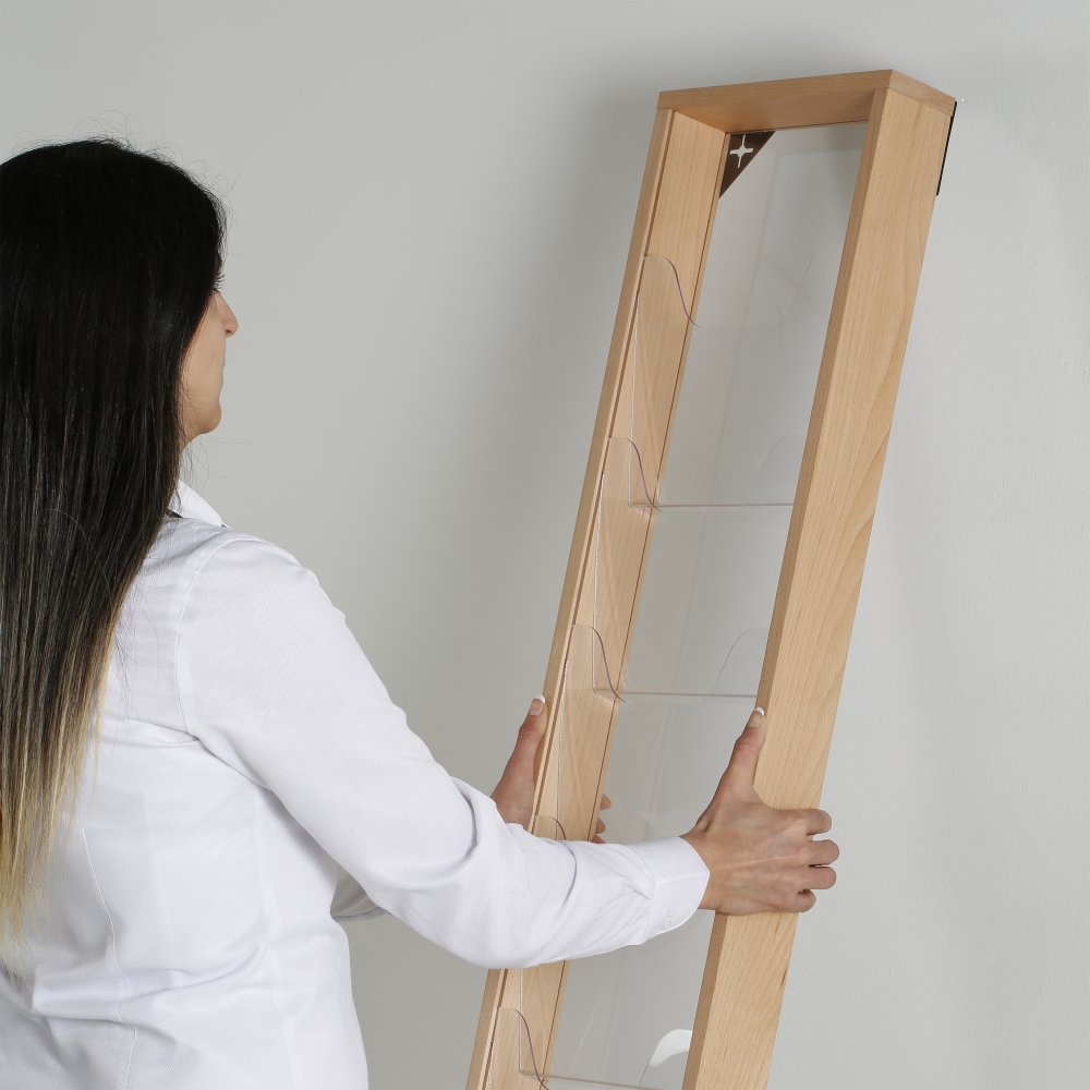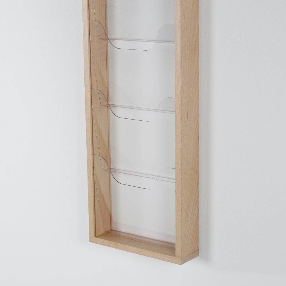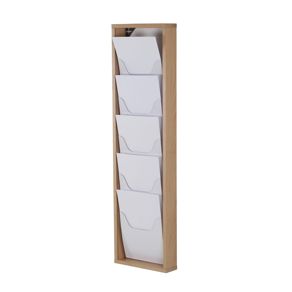 Natural Wood Wall-Mounted Magazine Rack – 5x A4 Slots, 8.5×11 Capacity