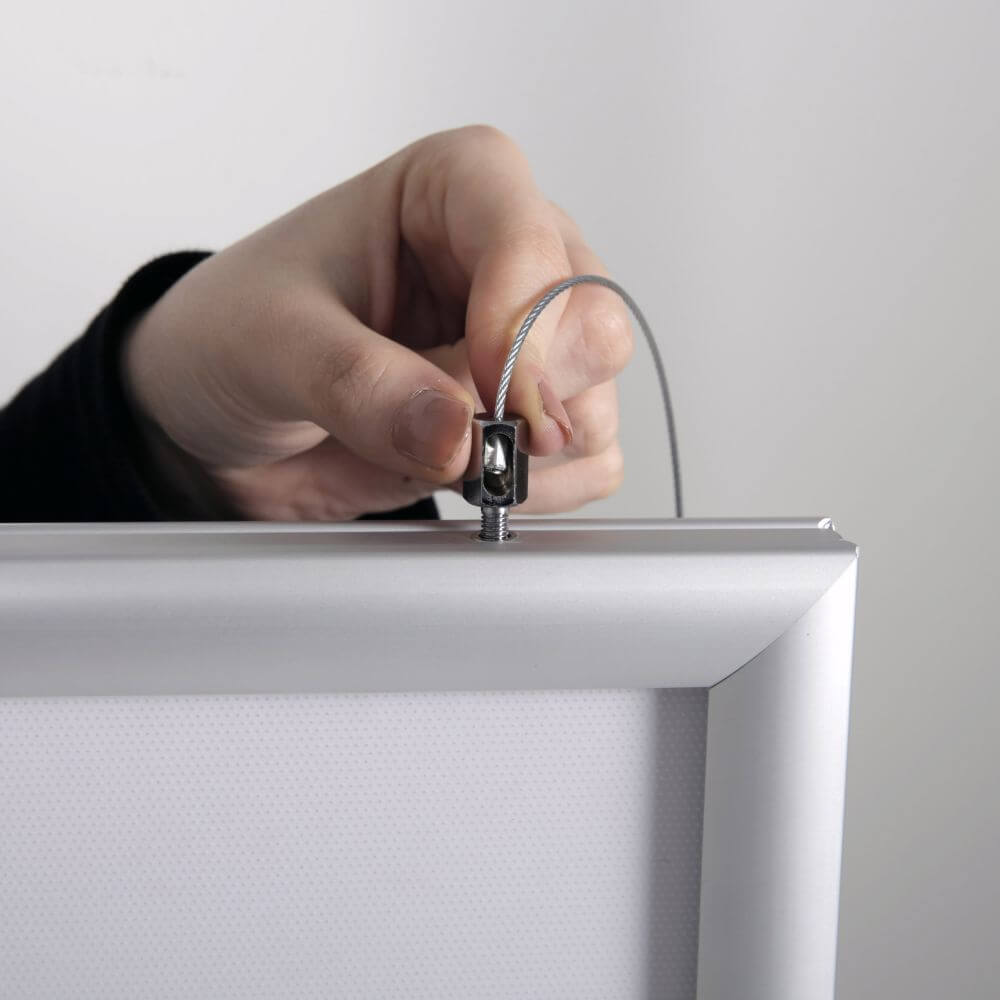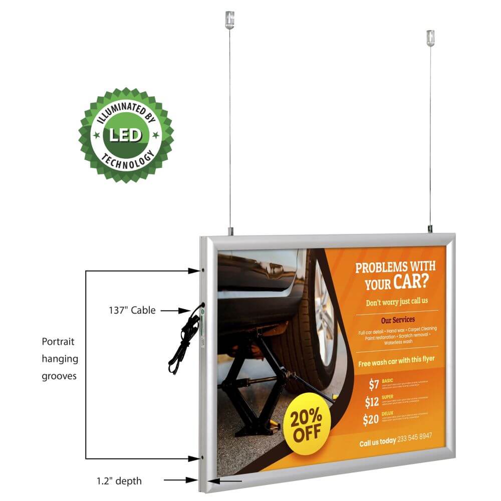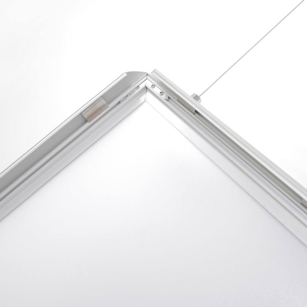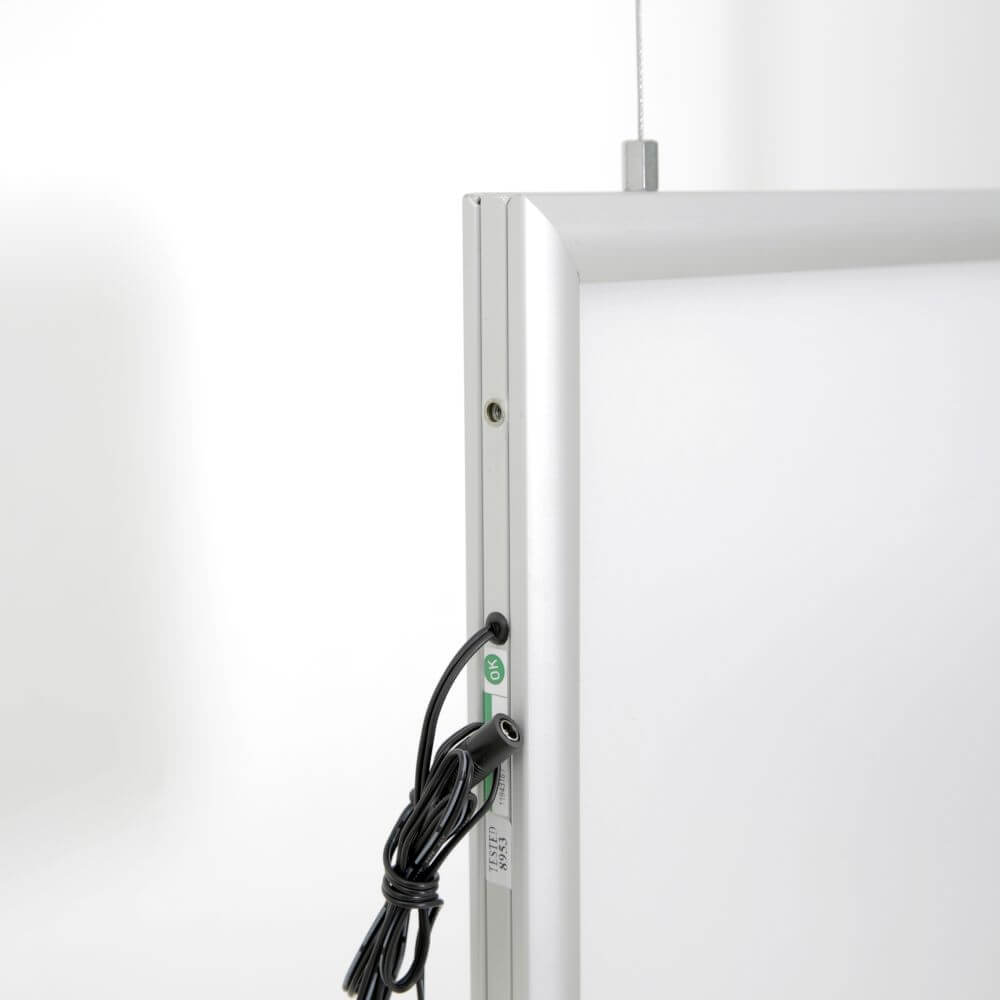 Enhance your customer engagement with our Ceiling Hanging Double-Sided Snap Frame, designed for both practicality and elegance. This frame features LED illumination, achieved through specially treated acrylic, ensuring uniform and powerful lighting. The pre-treated light-guided panels effectively diffuse light, delivering an impressive 1500 LUX at 6500K bright white illumination. With a generous power cord length of 137 inches, this snap frame is perfect for any commercial setting, providing a sleek and modern display solution. Ideal for retail environments, exhibitions, and more, this frame combines functionality with style to make your message shine.