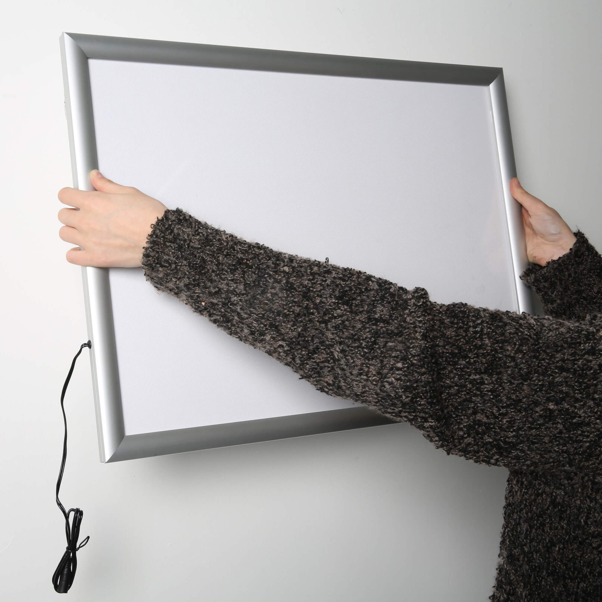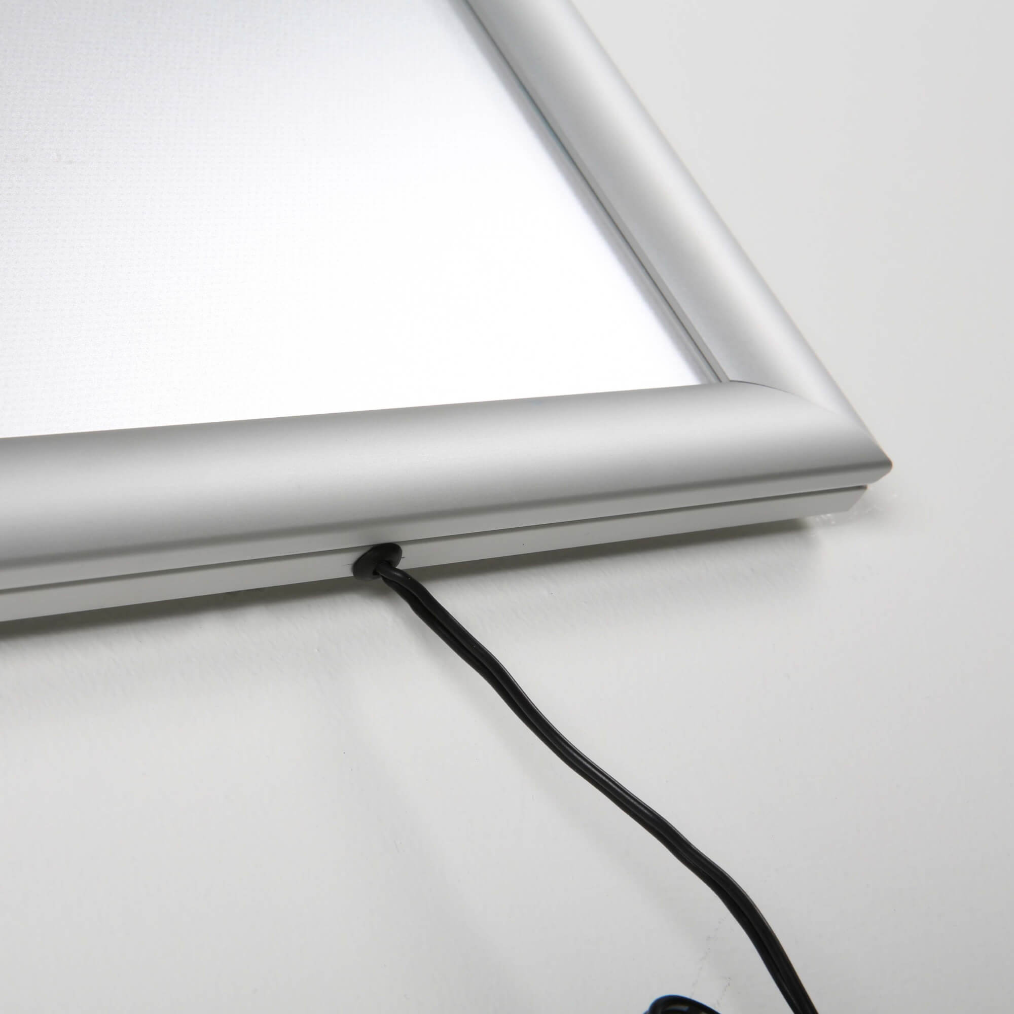 Enhance your customer engagement with our Ceiling Hanging Snap Frame, designed for both practicality and elegance. This frame features LED illumination, achieved through specially treated acrylic, ensuring uniform and powerful lighting. The pre-treated light-guided panels effectively diffuse light, providing a bright white illumination at 2300 LUX and 6500K. With a generous power cord length of 137 inches, this snap frame offers flexibility in installation. Perfect for showcasing your messages with clarity and style, this ceiling hanging frame is an ideal choice for any retail or commercial space.