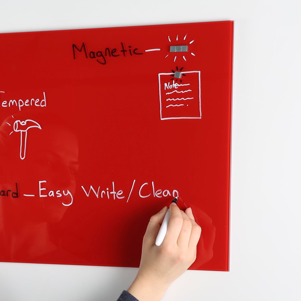 Red Tempered Glass Dry Erase Board Set 17.72″ x 17.72″ with Whiteboard Marker & 4 Magnetic Pins – Stylish & Durable Writing Surface