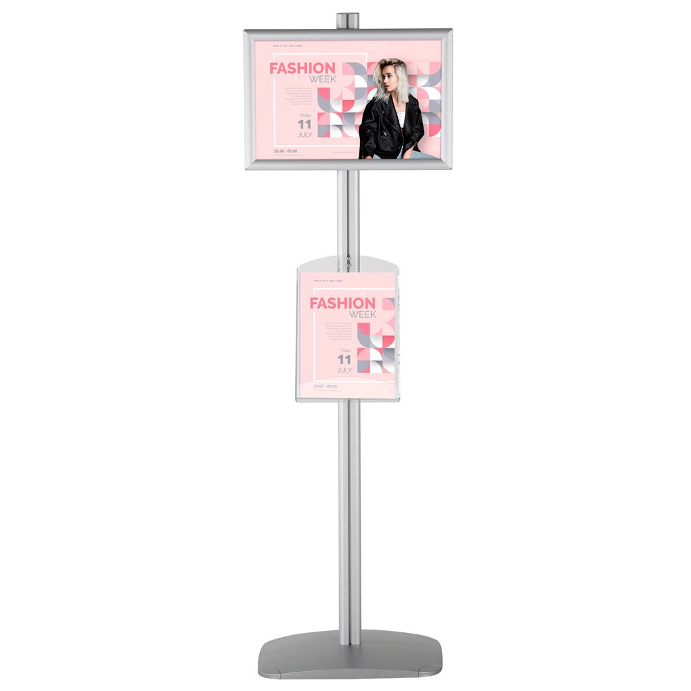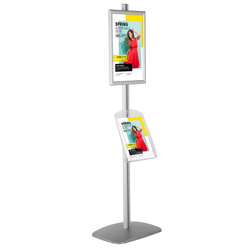 Silver 11×17 Poster Stand with 8.5×11 Clear Literature Pocket – Ideal for Displays