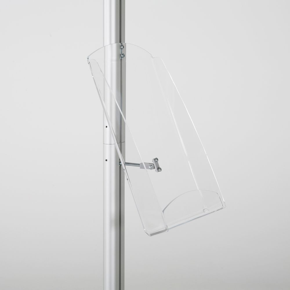 Introducing the perfect brochure stand for versatile indoor use, designed to accommodate various models. This stand features adjustable frames and shelves that can be securely attached to the central pole, either individually or collectively, offering flexibility and convenience. With a height of 57.5 inches, this brochure stand is ideal for showcasing promotional materials in offices, trade shows, and retail environments. Its sleek and sturdy design ensures stability and durability, making it an essential addition to your marketing toolkit. Enhance your display setup with this user-friendly and efficient brochure stand.