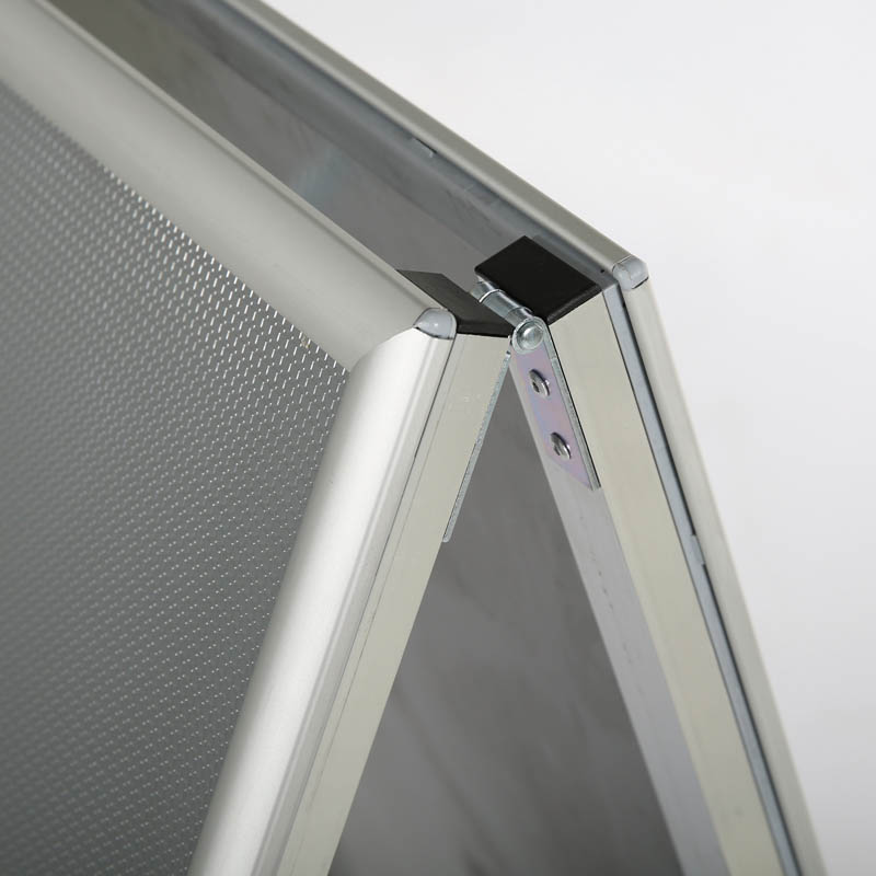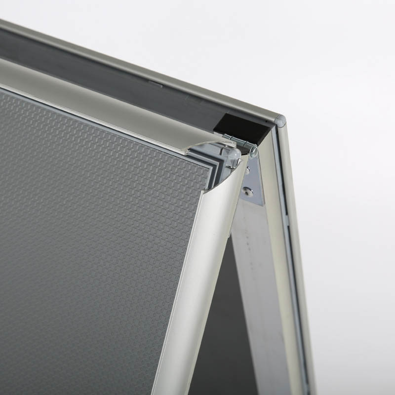 The use of this aluminum frame is fairly easy. To load or change a graphic, simply snap open the four spring-loaded frame edges, remove the anti-glare transparent cover and place graphic, picture, photo, poster and or artwork as required, then snap close the frame edges. The anti-glare cover allows a clear view of the print, poster and protects the artwork from dust and direct light.It is made of the finest materials while providing the highest level of quality. Snap Frames are made of the 1.25" aluminum profile makes the product durable yet light for easy carrying. The anodized finish will protect the frame from dust and light scratches. Legs are mill finished. Each unit has water drainage slots on the bottom profiles.Suitable for indoor and outdoor use. An excellent way to get attention when you want to display pictures, photos, posters, menus, marketing advertisements, promotions and important messages. It can be used in a multipurpose setting, whether this may be at your place of business, office, markets, cafes, restaurants, shopping centers, cinemas, theaters or more.
