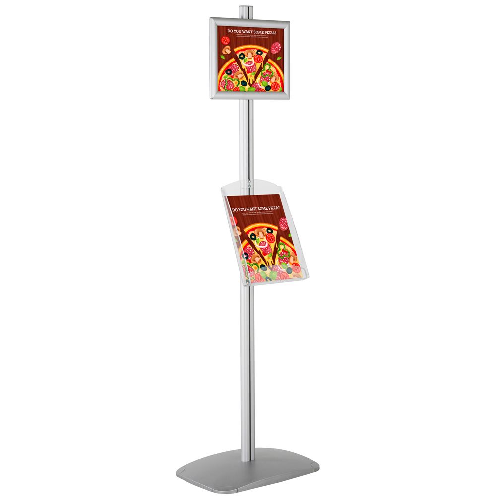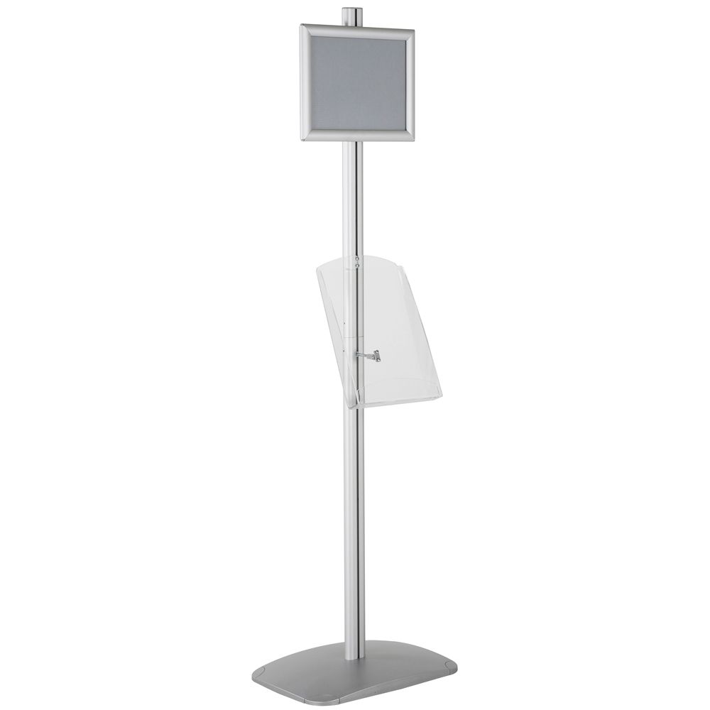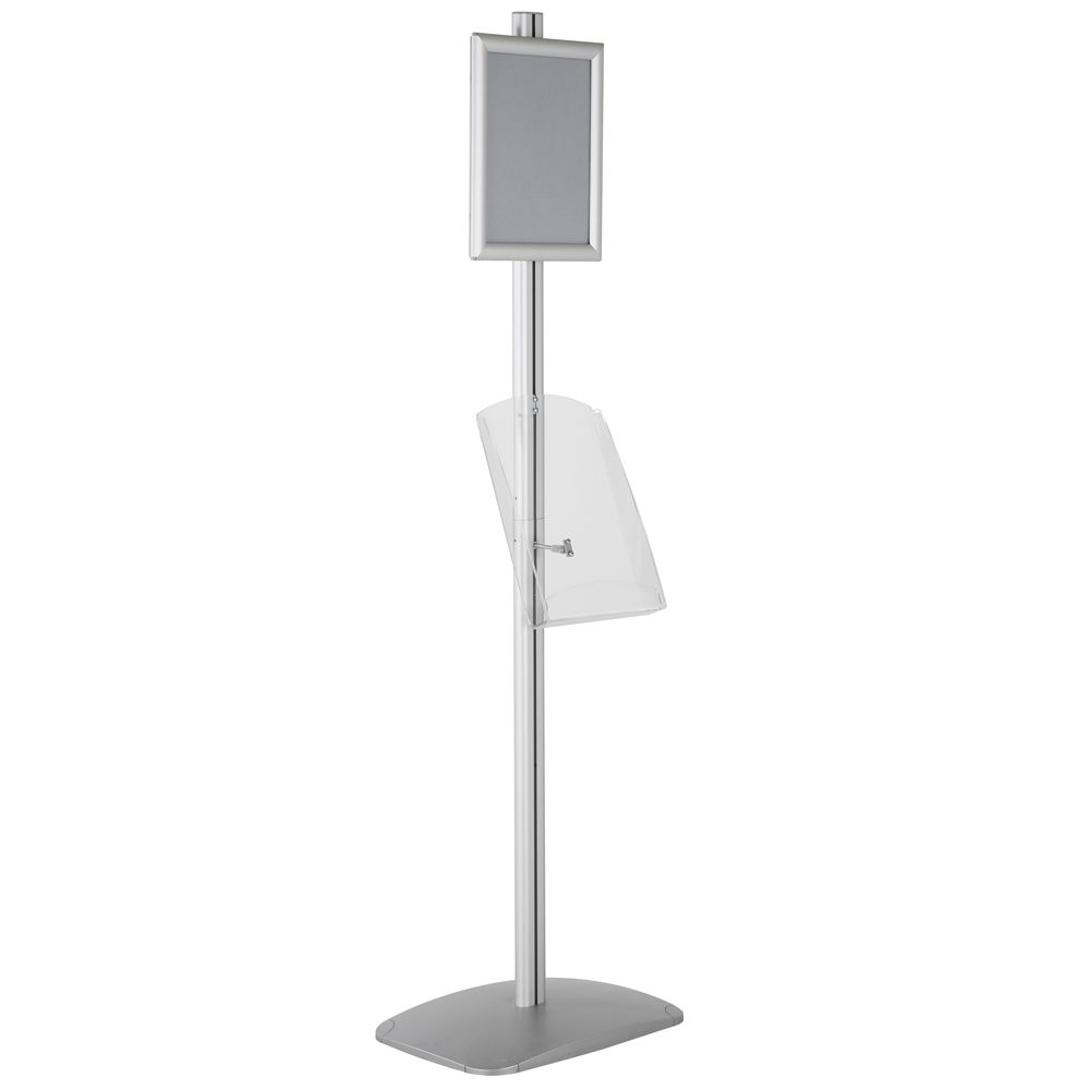 Silver Floor Display Stand with 8.5×11 Clear Literature Pocket for Brochures