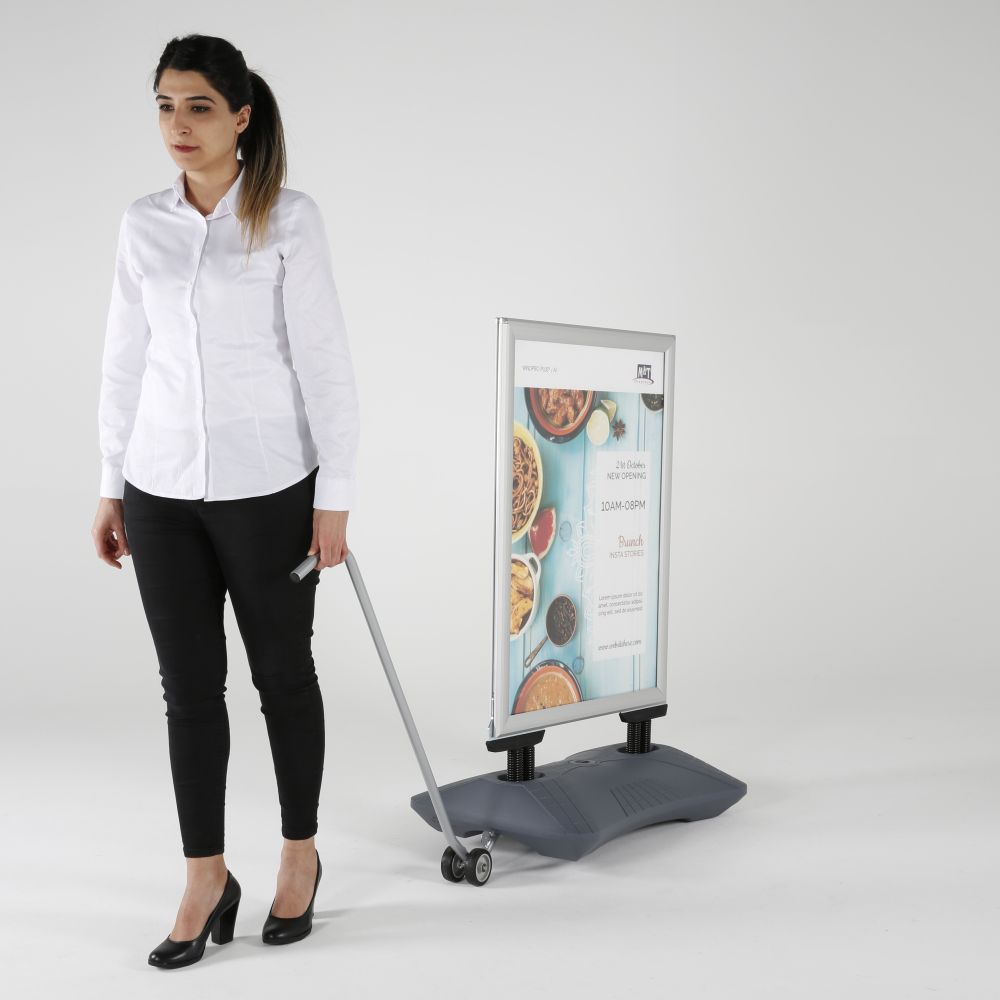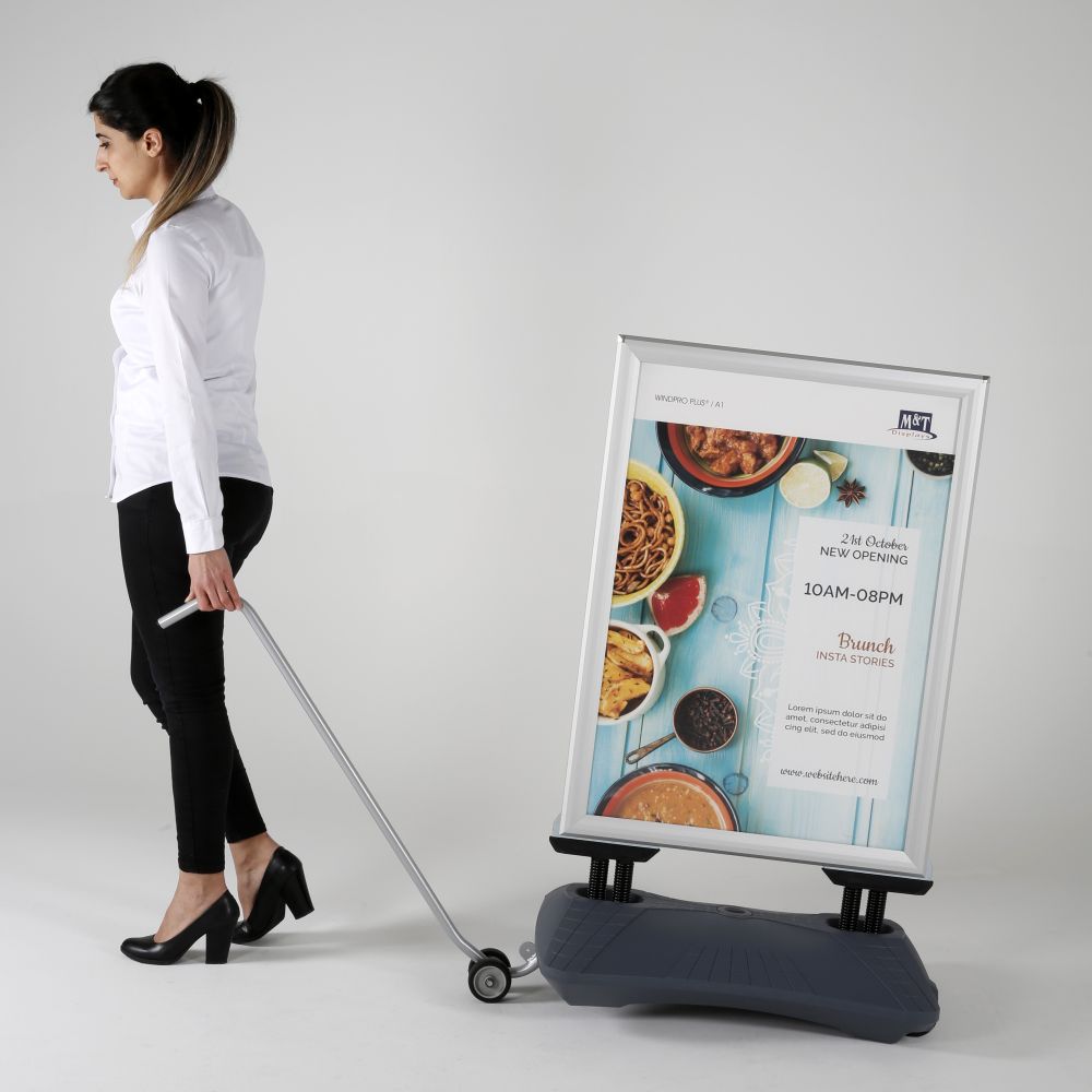 Silver Outdoor WindPro Sidewalk Sign Holder Rolling Cart Trolley Tool