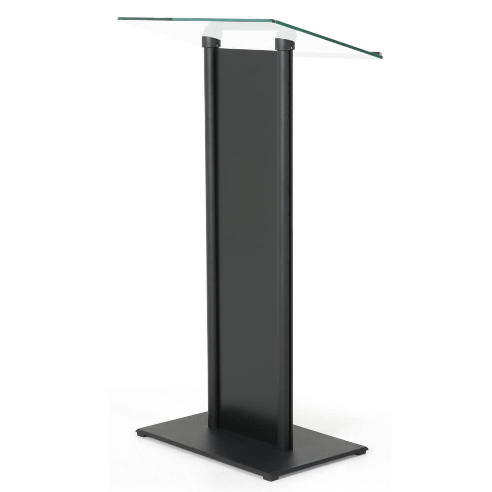 Sleek Black Aluminum Front Panel Tempered Clear Glass Podium Lectern Pulpit Desk