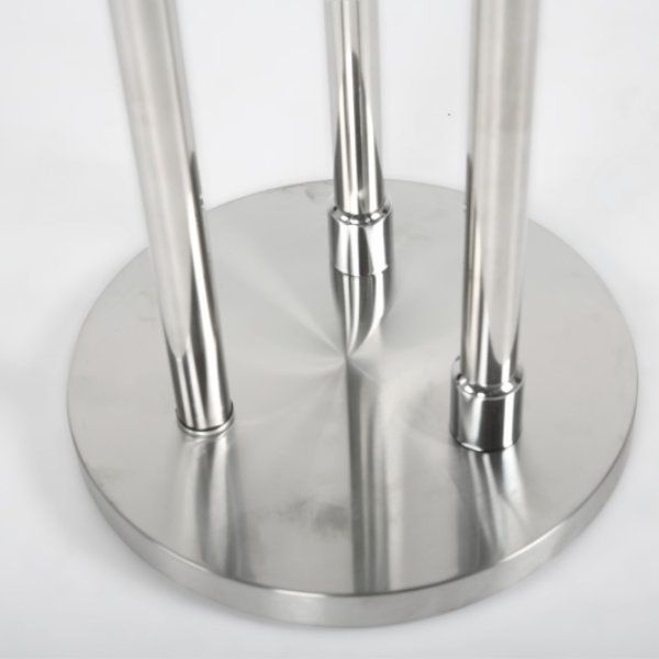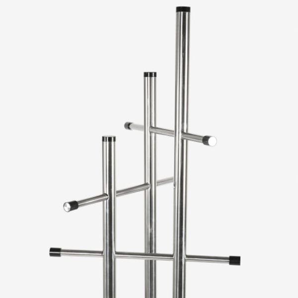 17" round heavy metal base is perfectly suited for modern environments and provides stability.This coat hanger is made of the finest materials while providing the highest level of quality. It is made of stainless steel.Suitable for indoor and outdoor use. This perfectly stable, floor-standing hanger is suitable for coats, hats, purses, children?s clothes, and more.