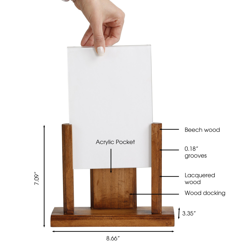 Vintage Dark Wood Desktop Menu Holder Set with Acrylic U-Type Pocket (2 Pack, 5.5×8.5 Inches) – Stylish Display Stand for Restaurants and Cafes