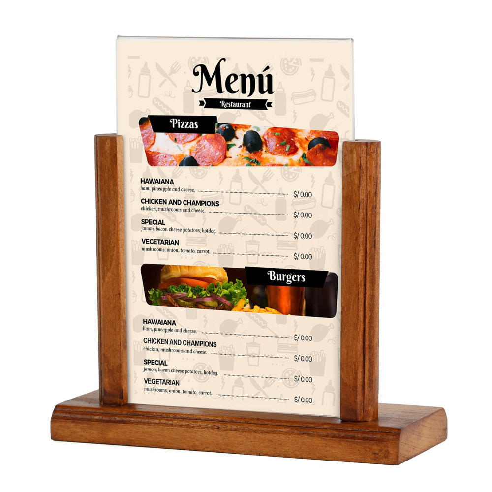Enhance your menu display with our innovative U-Shape Pocket design, allowing for effortless top-loading of paper to safeguard against tampering and ensure quick and easy content updates. The durable acrylic pocket shields your menus from potential hazards such as food spills and fizzy drink splashes, maintaining a pristine presentation. Additionally, the integrated wood docking feature provides convenient storage space for stacking various items like brochures, napkins, and more, keeping your service area organized and efficient. Perfect for any dining establishment, this versatile solution combines functionality with style.