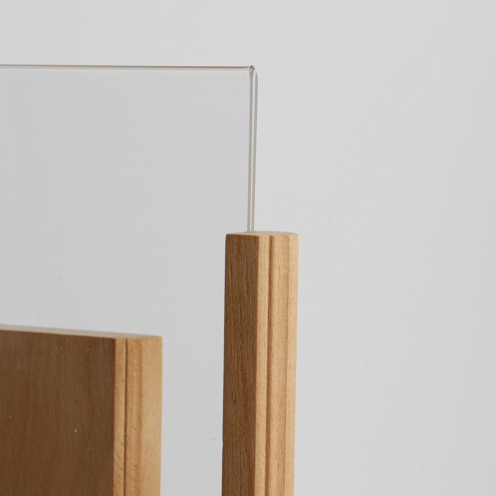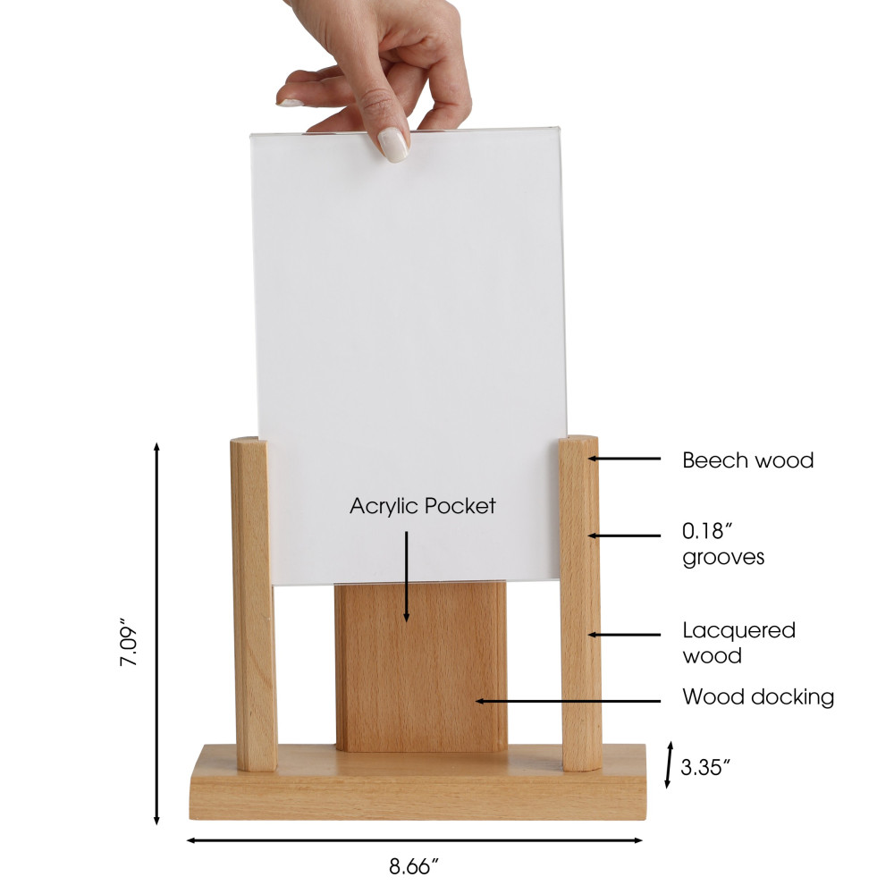 Enhance your menu display with our innovative U-Shape Pocket design, allowing for effortless top-loading of paper to safeguard against tampering and ensure quick and easy content updates. The durable acrylic pocket shields your menus from potential hazards such as food spills and fizzy drink splashes, maintaining a pristine presentation. Additionally, the integrated wood docking feature provides convenient storage space for stacking various items like brochures, napkins, and more, keeping your service area organized and efficient. Perfect for any dining establishment, this versatile solution combines functionality with style.