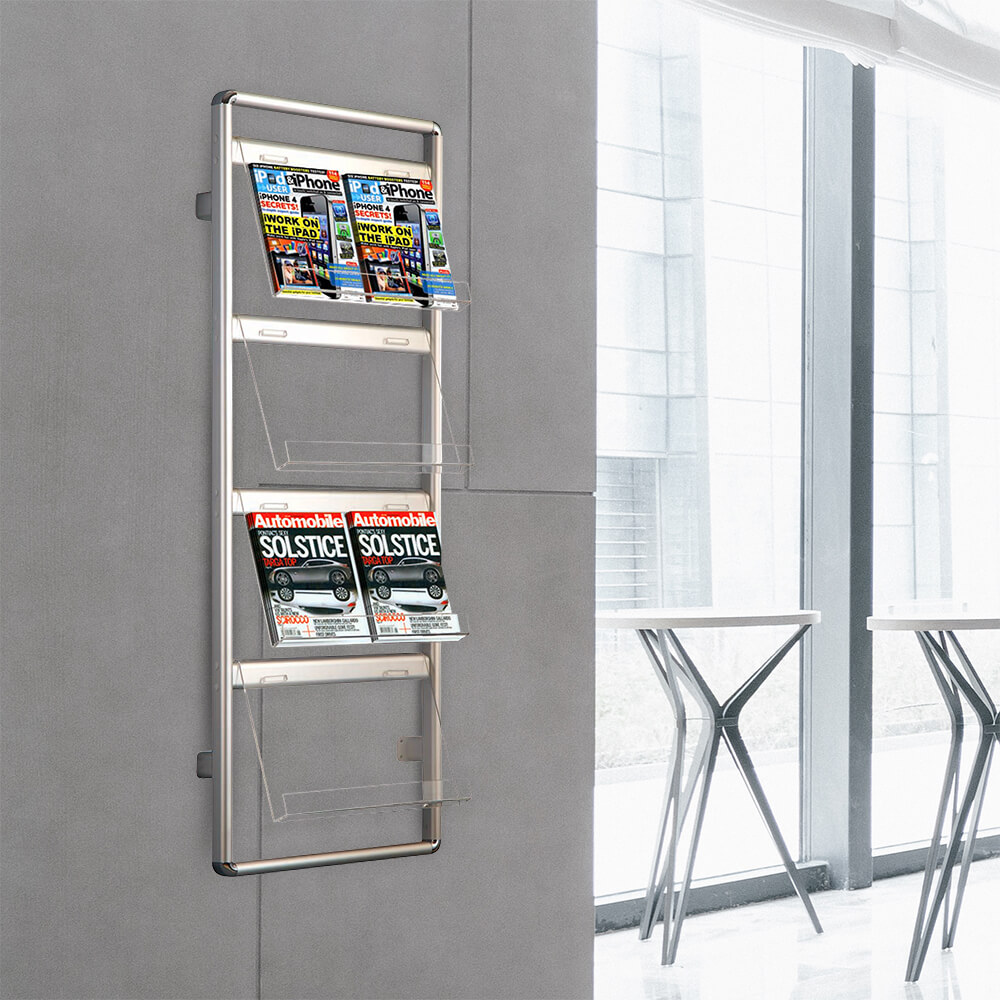 This eye-catching brochure stand boasts a stylish design, making it an ideal choice for showcasing literature. The literature holder is designed for easy and quick assembly, ensuring a hassle-free setup. Perfect for trade shows, offices, and retail environments, this stand enhances the visibility of your promotional materials while maintaining a sleek and professional appearance.